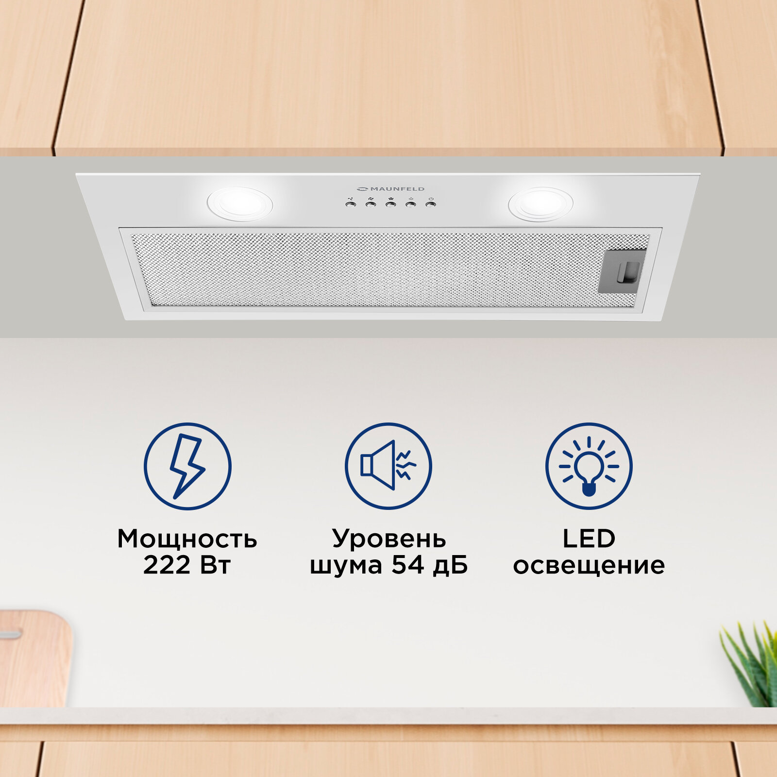 Кухонная вытяжка MAUNFELD TRAPEZE 602M белый полновстраиваемая, 54 дБ, 222Вт, 1150 м3/ч, ширина 60 см информация: