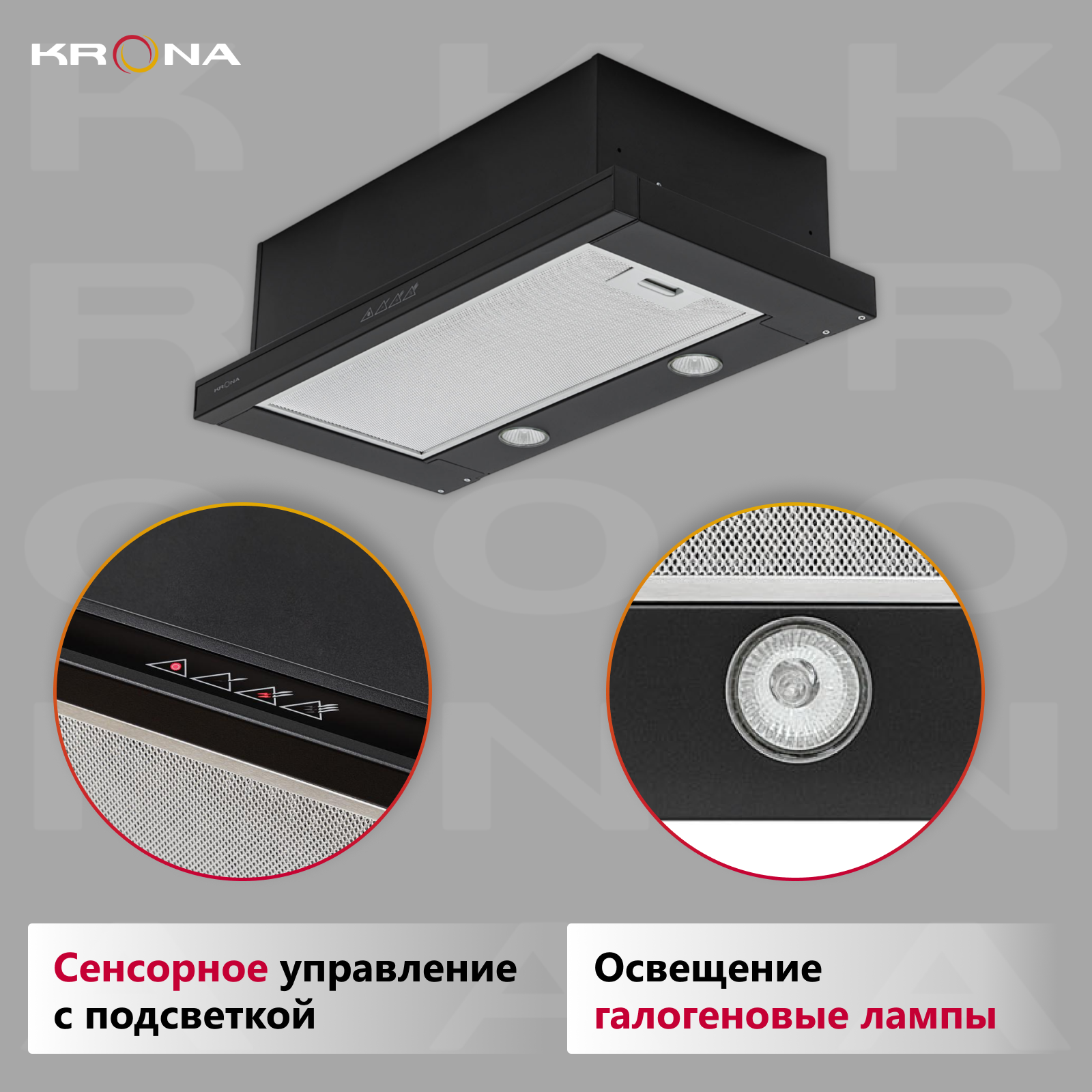 Вытяжка встраиваемая Krona Kamilla 600 черный управление: сенсорное (2 мотора)