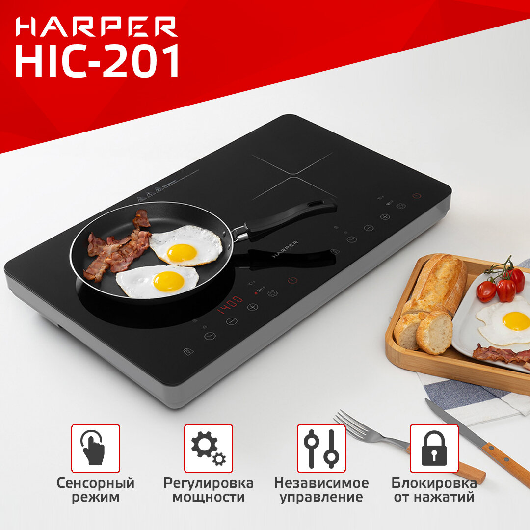 Отзывы на Индукционная плита настольная HARPER HIC-201 / стеклокерамика / 2 конфорки, сенсорное управление, таймер приготовления, черная