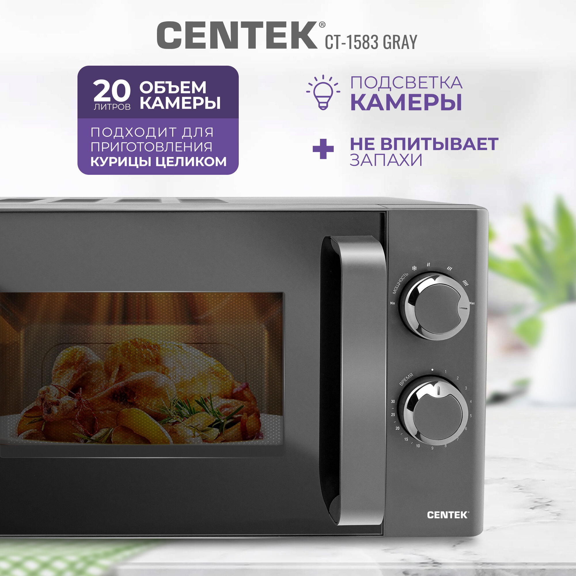 Centek СВЧ CT-1583 Gray /серая/ 700W, 20л, 6 режимов CT-1583 Gray .