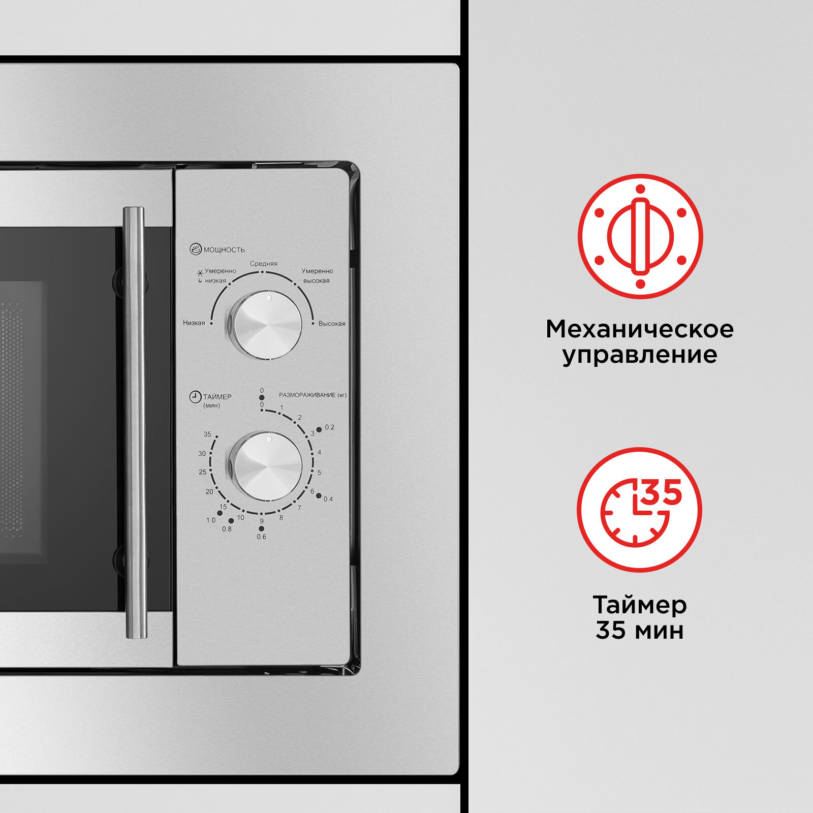 Микроволновая печь встраиваемая HOMSair MOB201S нержавеющая сталь, 20 л, 1300 Вт, 5 уровней мощности, 6 режимов информация: