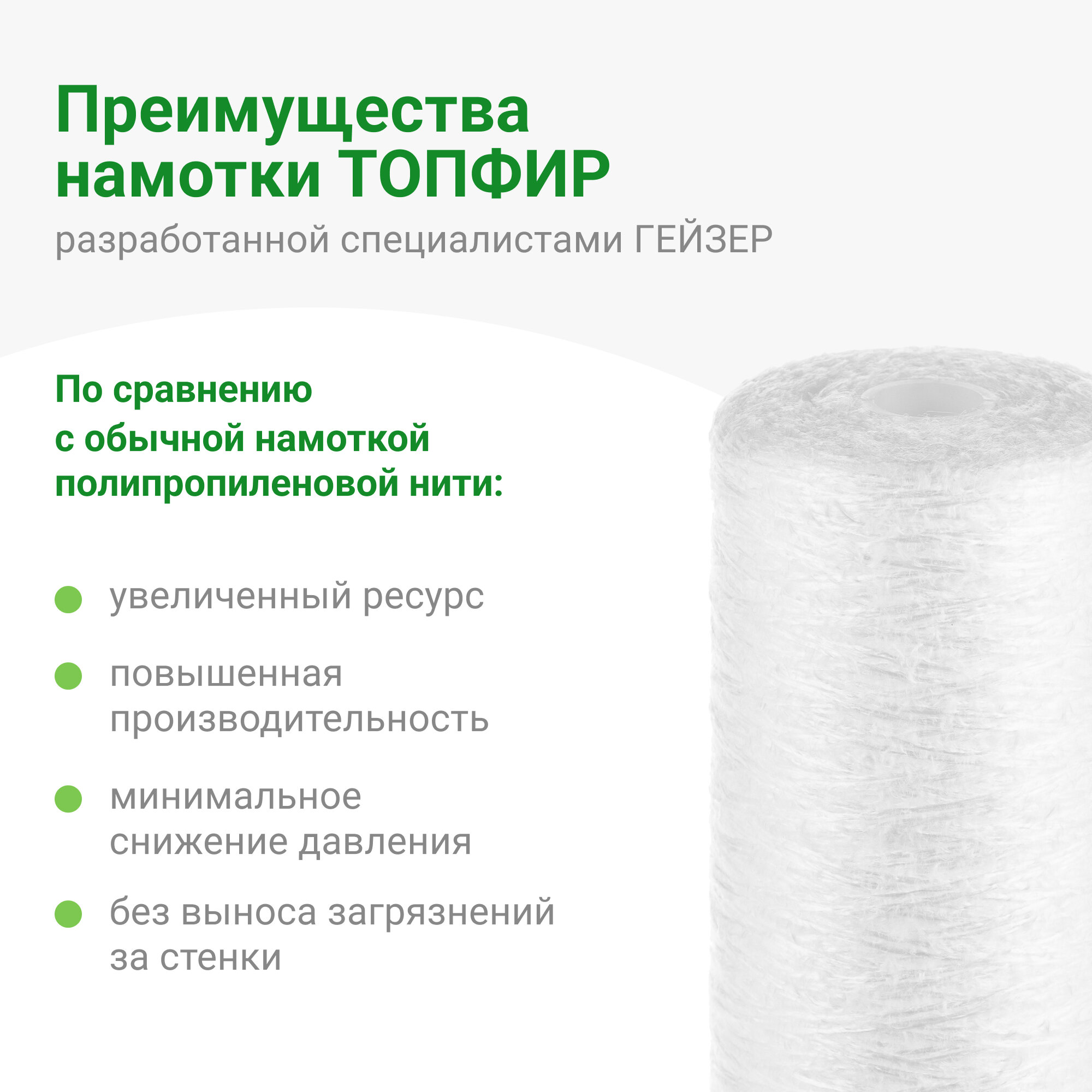 Полипропиленовый картридж механической очистки / полипропиленовая нить Гейзер PPY 10 для холодной воды - 10BB, 28056 - 1 шт.