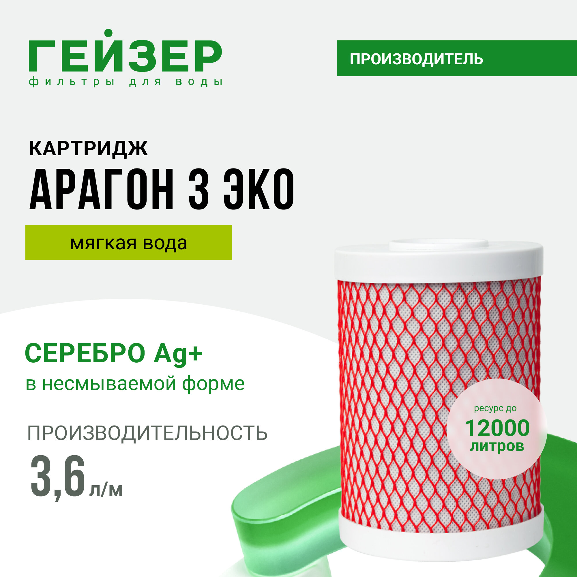 Картридж Гейзер Арагон 3 ЭКО, для мягкой воды, обеспечивает уникальную очистку по широкому спектру загрязнителей, включая бактерии, 30060 информация: