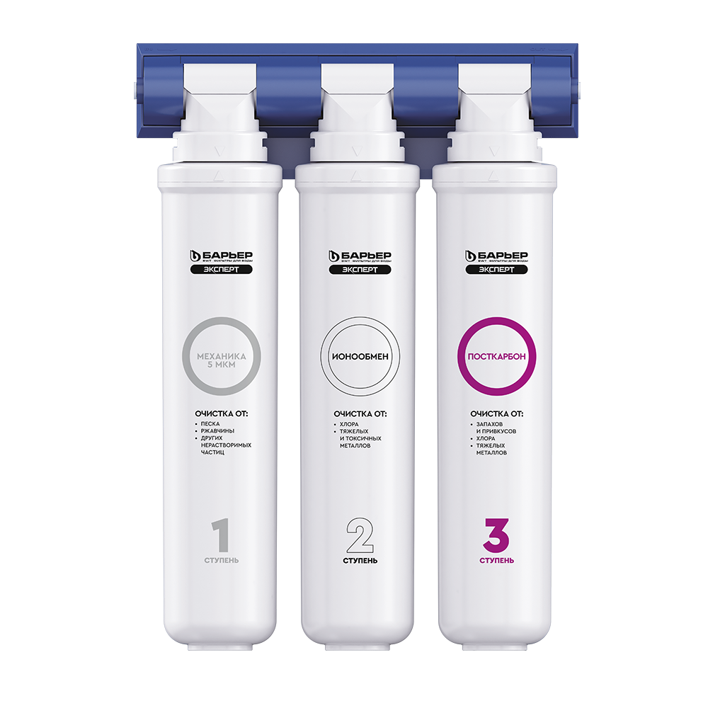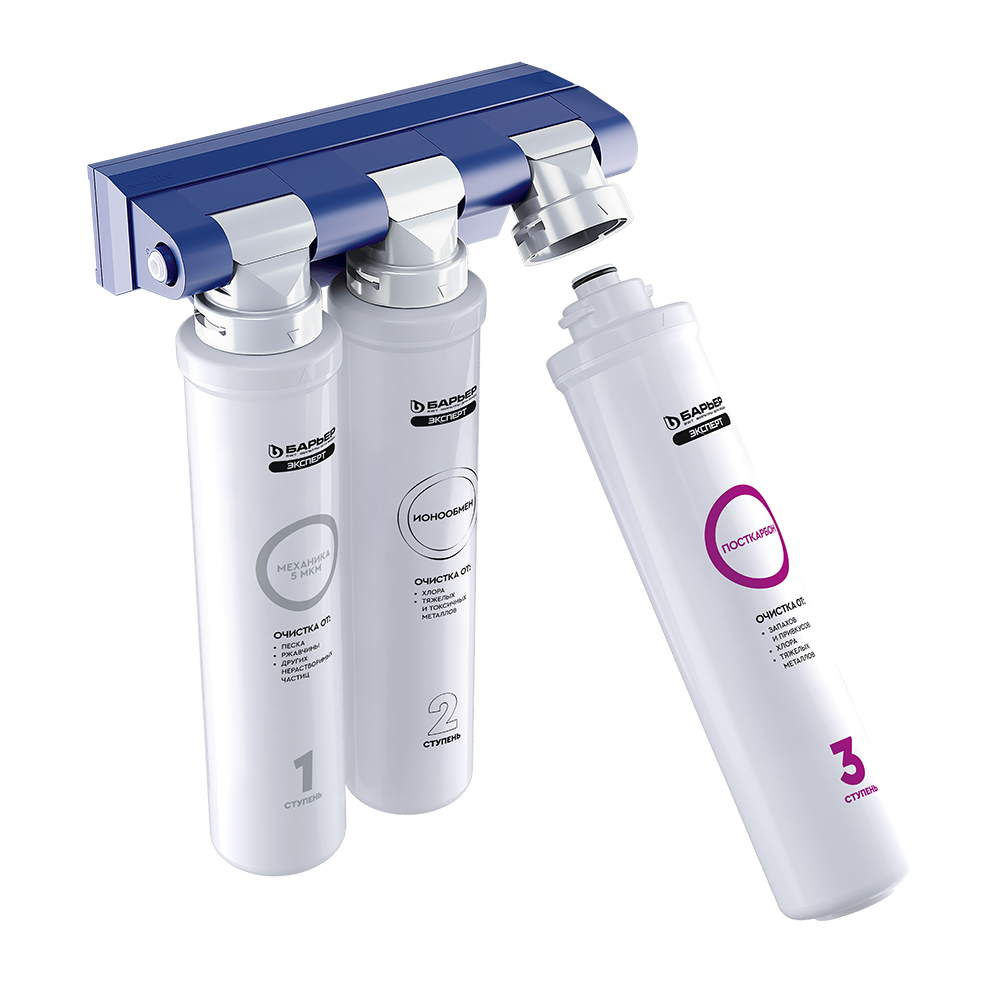 Фильтр под мойку для очистки воды трехступенчатый, быстросъемный БАРЬЕР эксперт Стандарт (без крана), удаление хлора и вредных примесей.