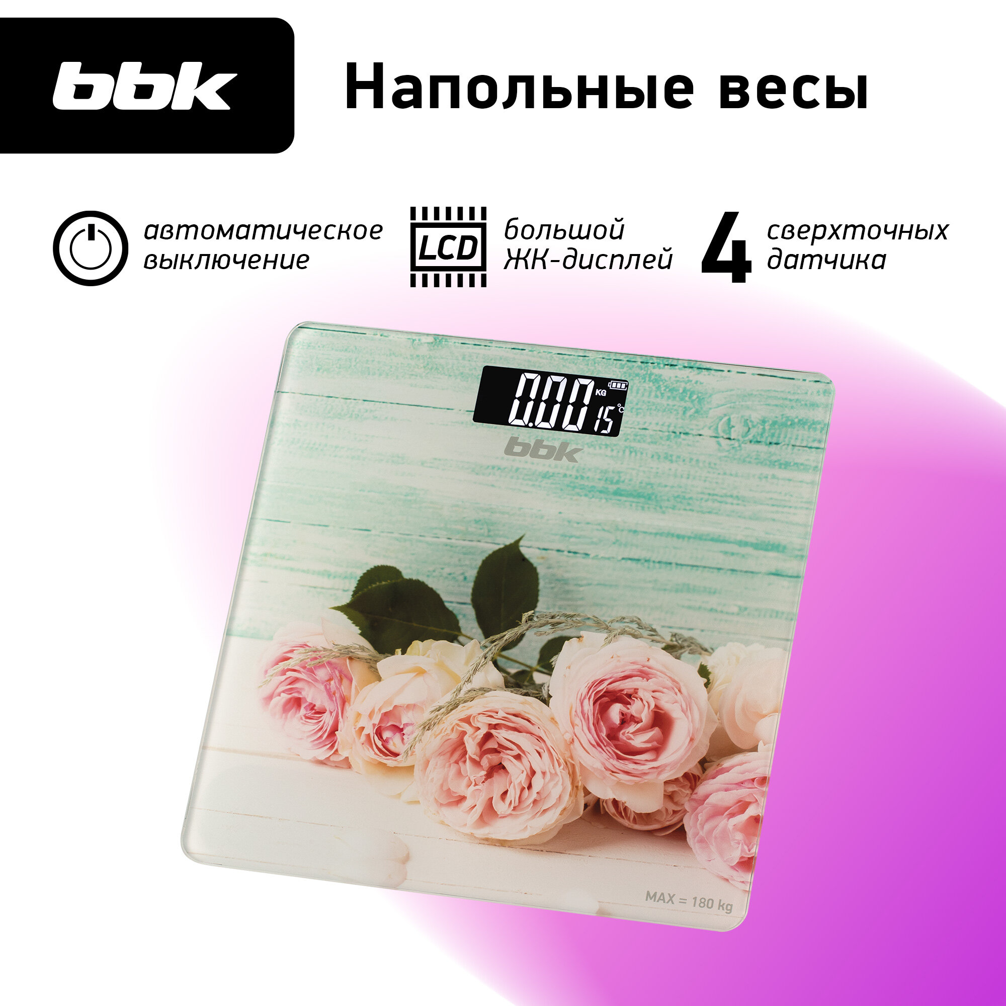 Весы напольные BBK BCS3003G розовый, LCD-дисплей, максимальный вес 180 кг, точность измерения 100 г, автоматическое отключение информация: