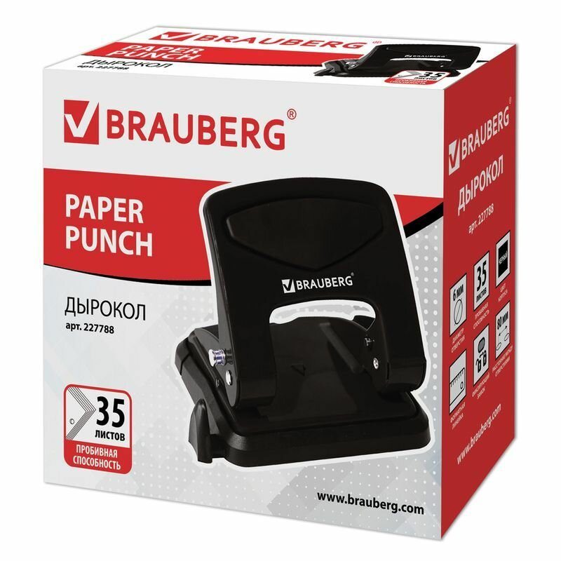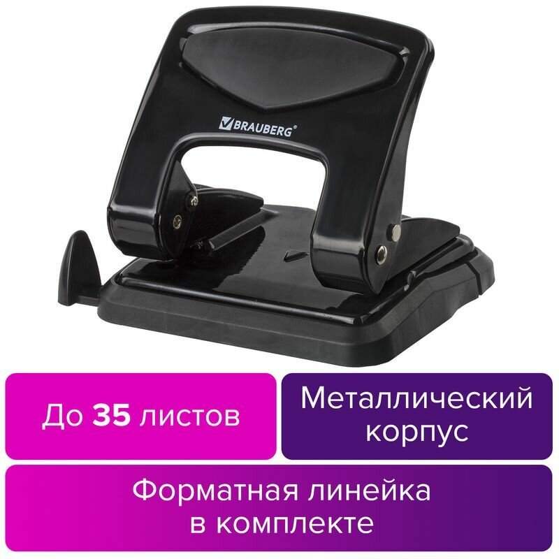 Дырокол BRAUBERG PN-150M 35 листов, 1 шт., черный