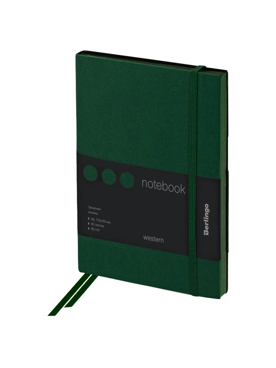 Записная книжка Berlingo А6, 80 листов, кожзам, "Western", с резинкой, зеленый (NB0_85604)