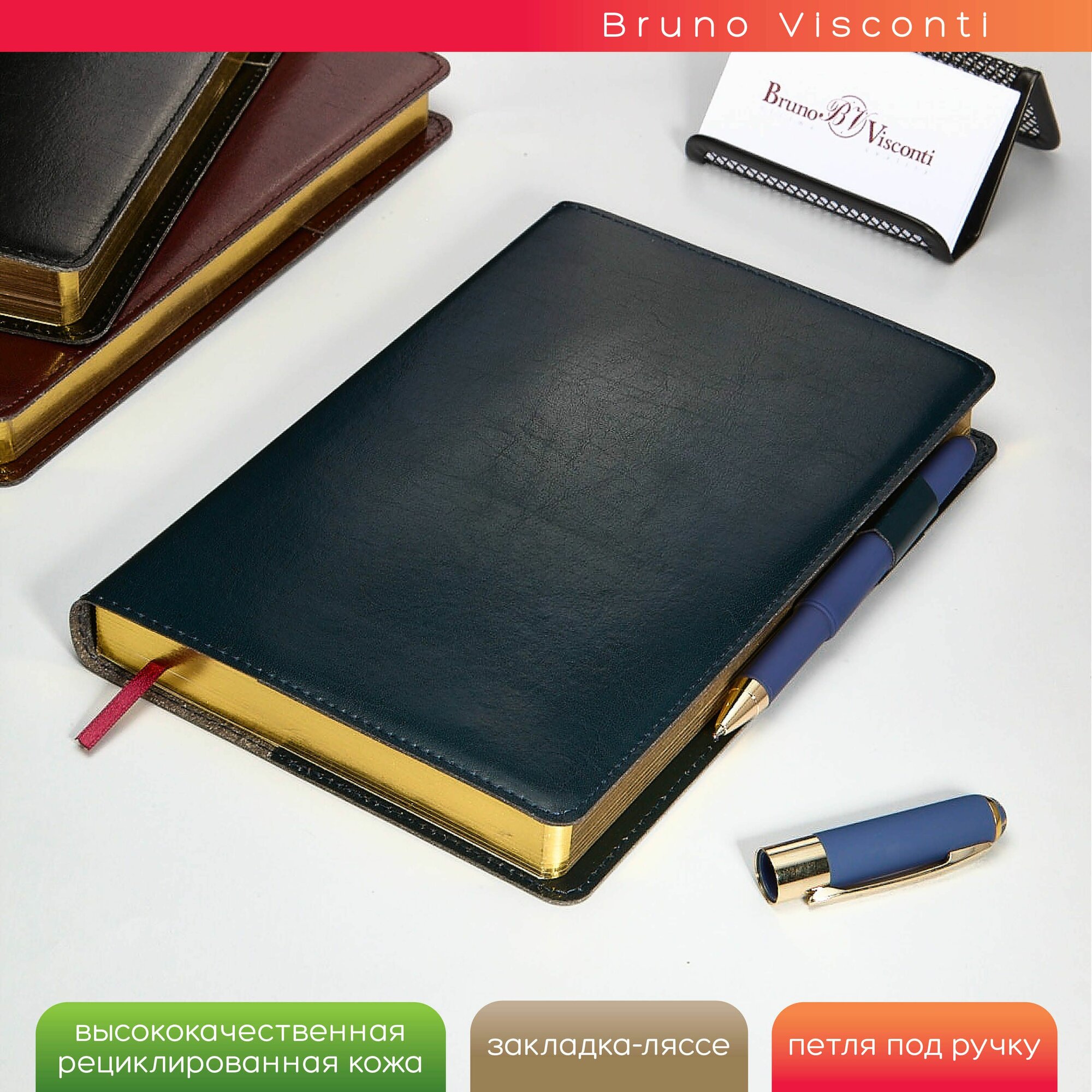 BrunoVisconti Ежедневник полудатированный А5, 208 листов Profy, рециклированная кожа, сменный блок, золотой срез, чёрный