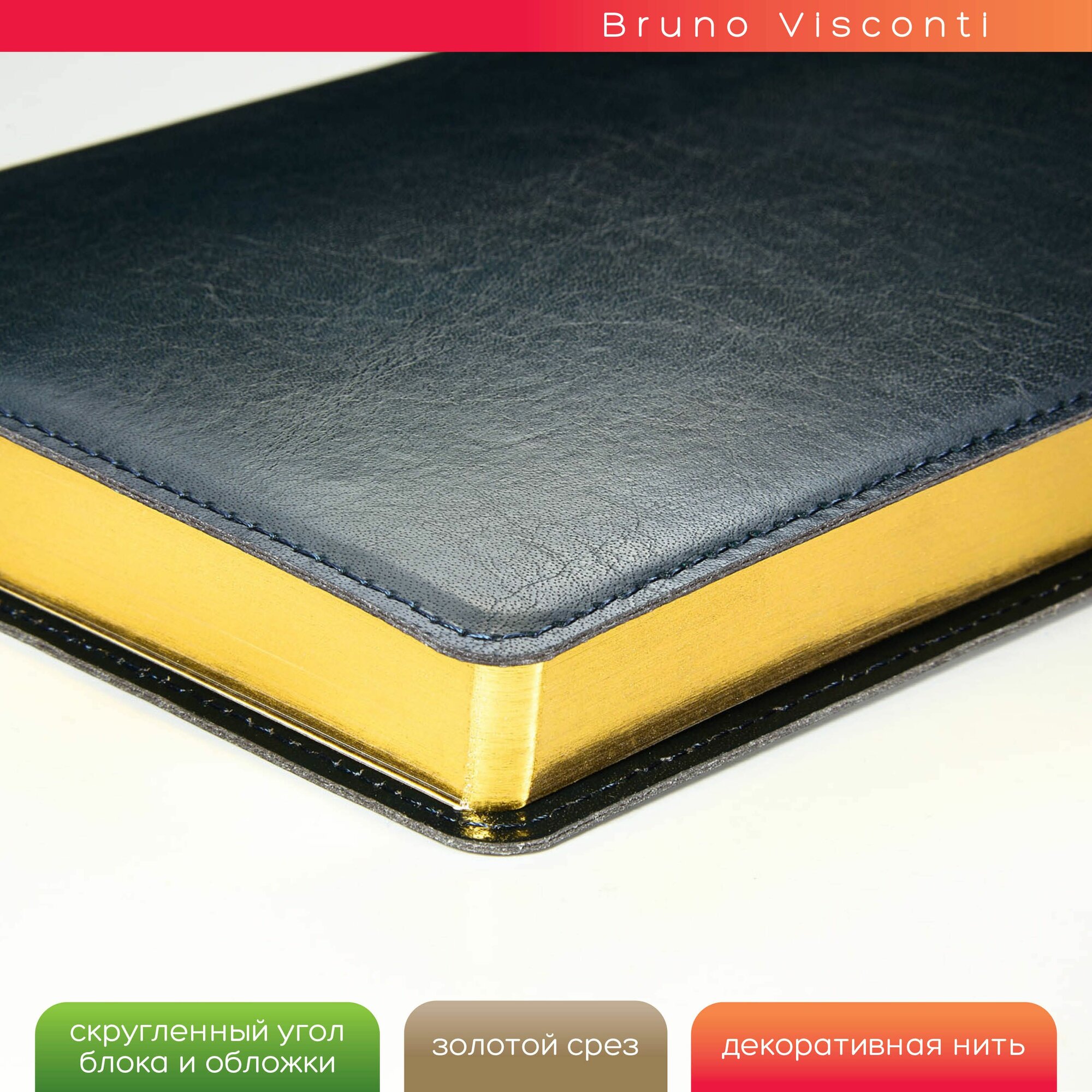 Ежедневник полудатированный Bruno Visconti Profi натуральная кожа A5 208 листов синий и золотой 152x222 мм, 257574 2 069 ₽