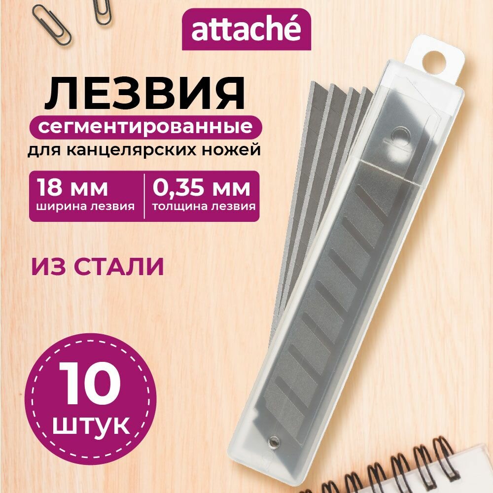 Лезвия для канцелярского ножа Attache, сегментированные, 18 мм, 10 штук в упаковке информация: