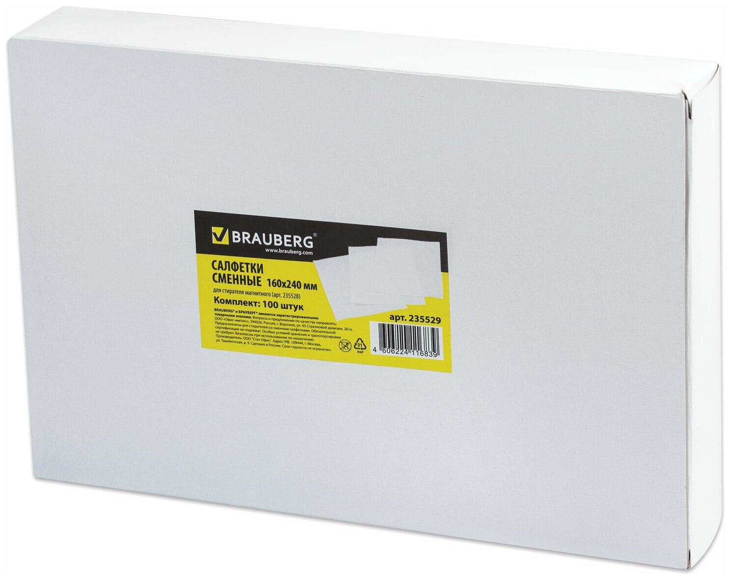 Салфетки сменные для стирателя магнитного 235528 (160х240 мм), комплект 100 шт., россия, BRAUBERG, 235529 В наборе: 1компл.