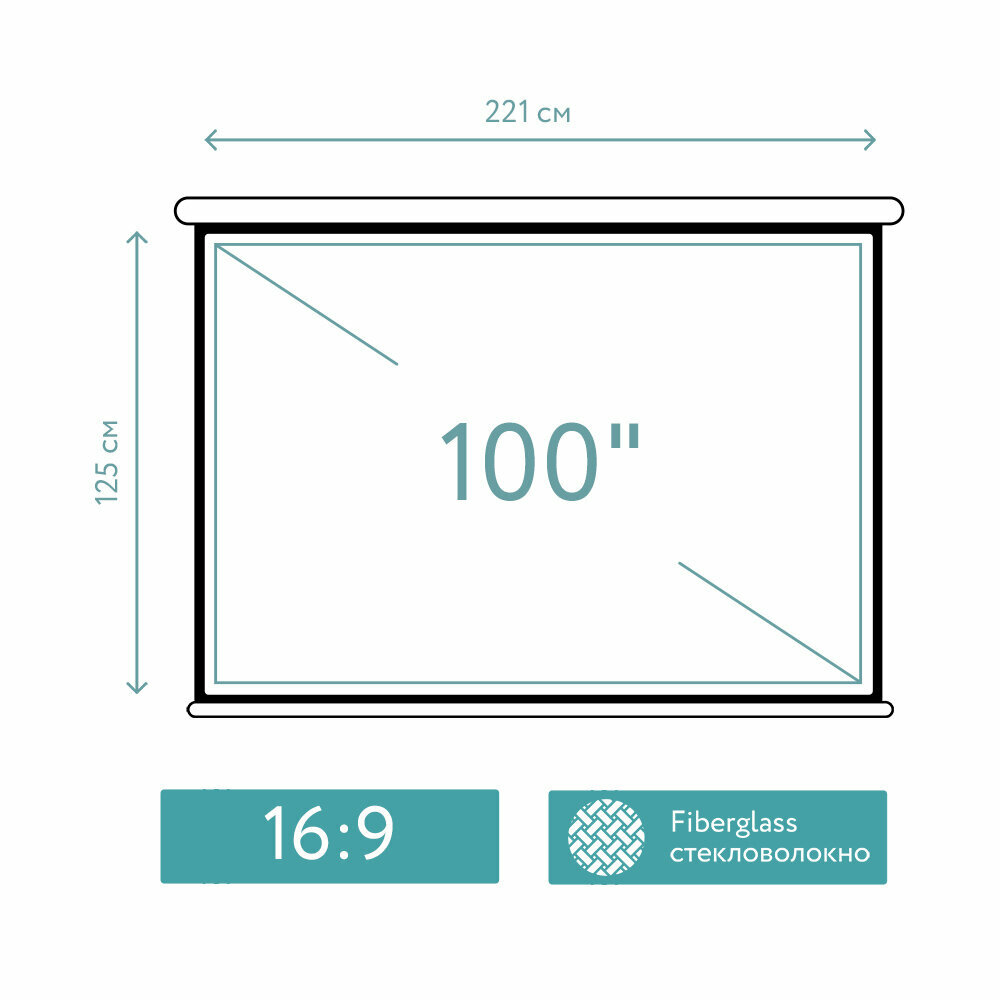 Экран SOK SCPSM-221x125FG Pro 100 настенно-потолочный, моторизованный, Fiberglass, белый , ED 15 информация: