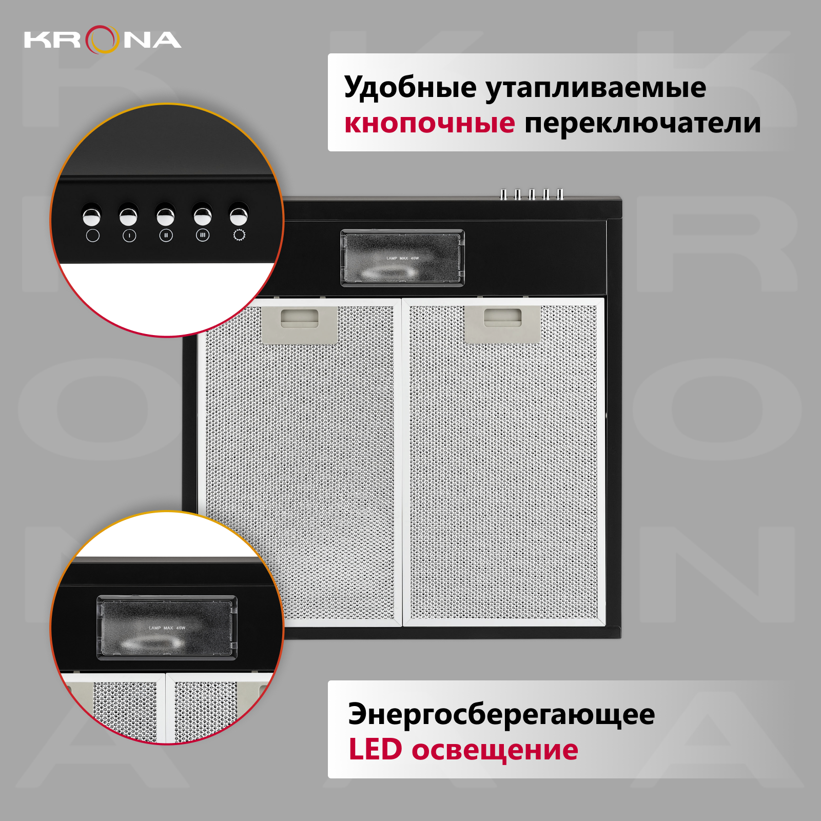 Вытяжка KRONA Jessica PB 500 slim черный управление: кнопочное