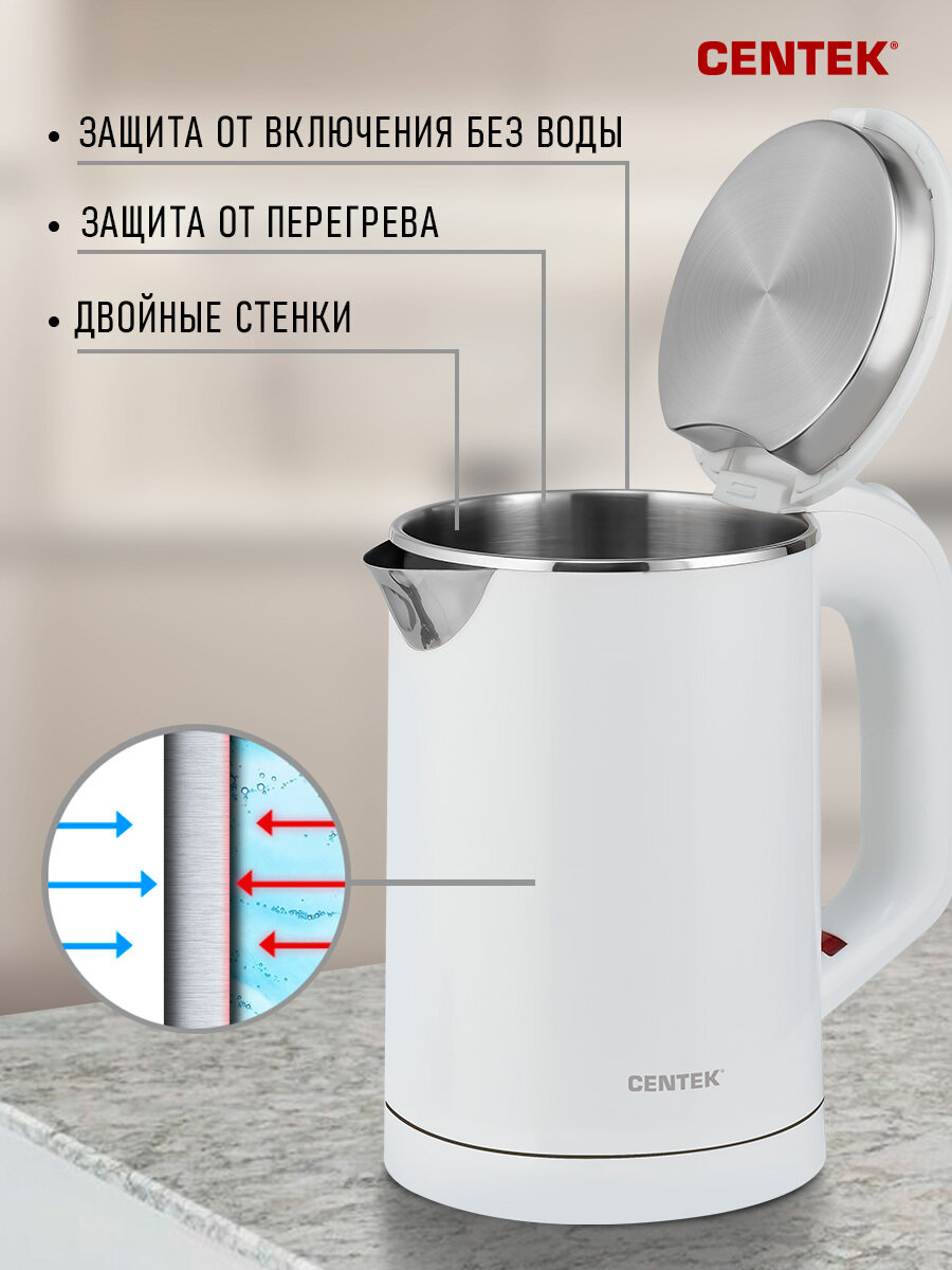 Чайник CENTEK CT-0006 белый 0,6 л, металл, двойные стенки