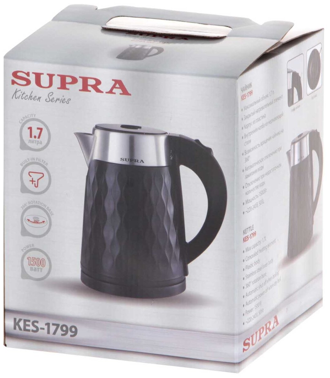 Электрический чайник SUPRA KES-1799, 1,7 литра, двуслойный корпус, блокировка без воды, черный информация: