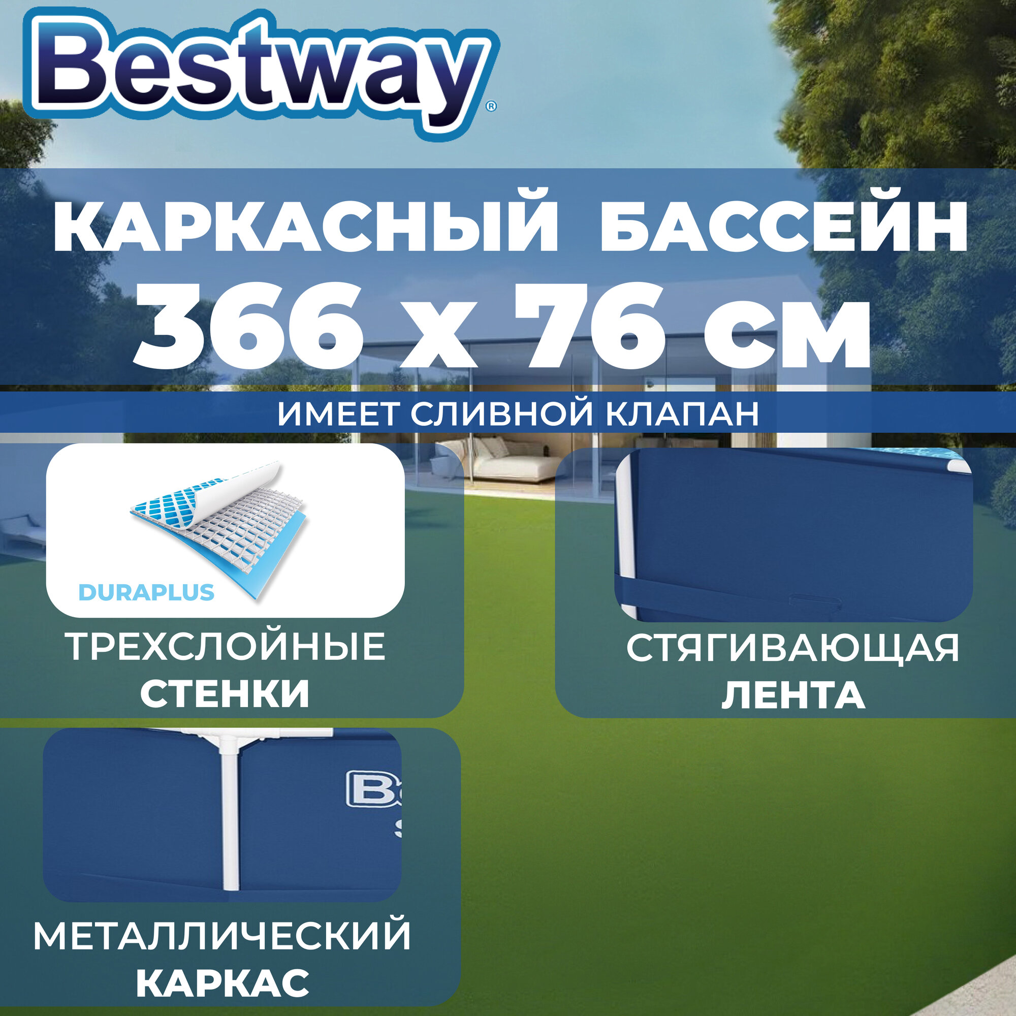 Отзывы на Бассейн каркасный Bestway, 366х76 см, Steel Pro, 56706, 6473 л