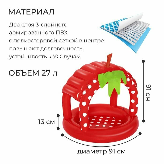 Бассейн надувной "Фрукты" с навесом 94 х 89 х 79 см - для защиты ребенка от прямых солнечных лучей и перегрева. 2 980 ₽