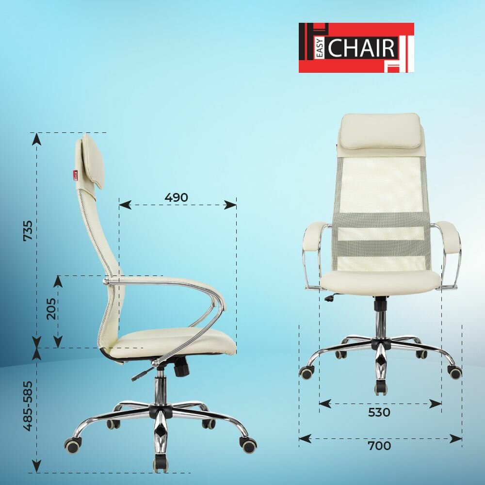 Отзывы на Кресло компьютерное для руководителей Easy Chair 655 SL, офисный стул на колесиках, с подголовником, экокожа/сетка, бежевый