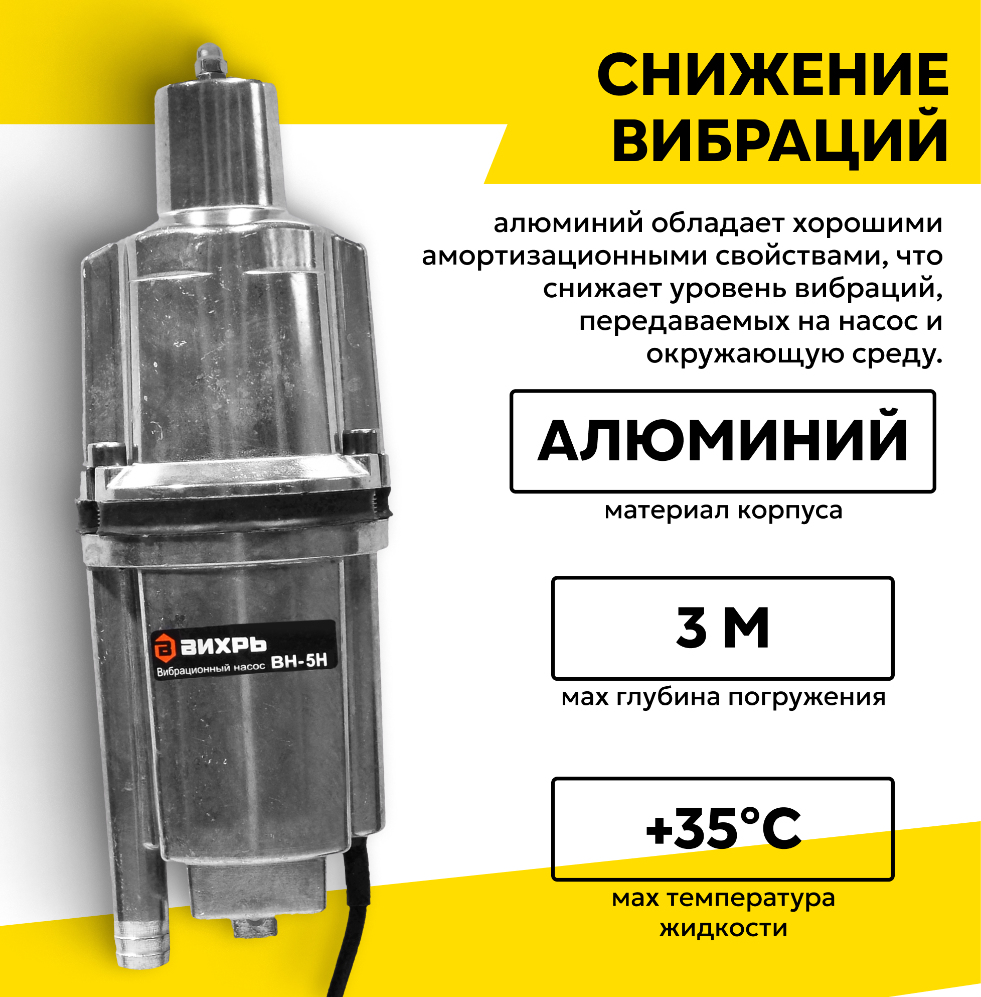Отзывы на Вибрационный насос ВН-5Н Вихрь, высота подъема 72м, нижний забор воды, кабель 5м