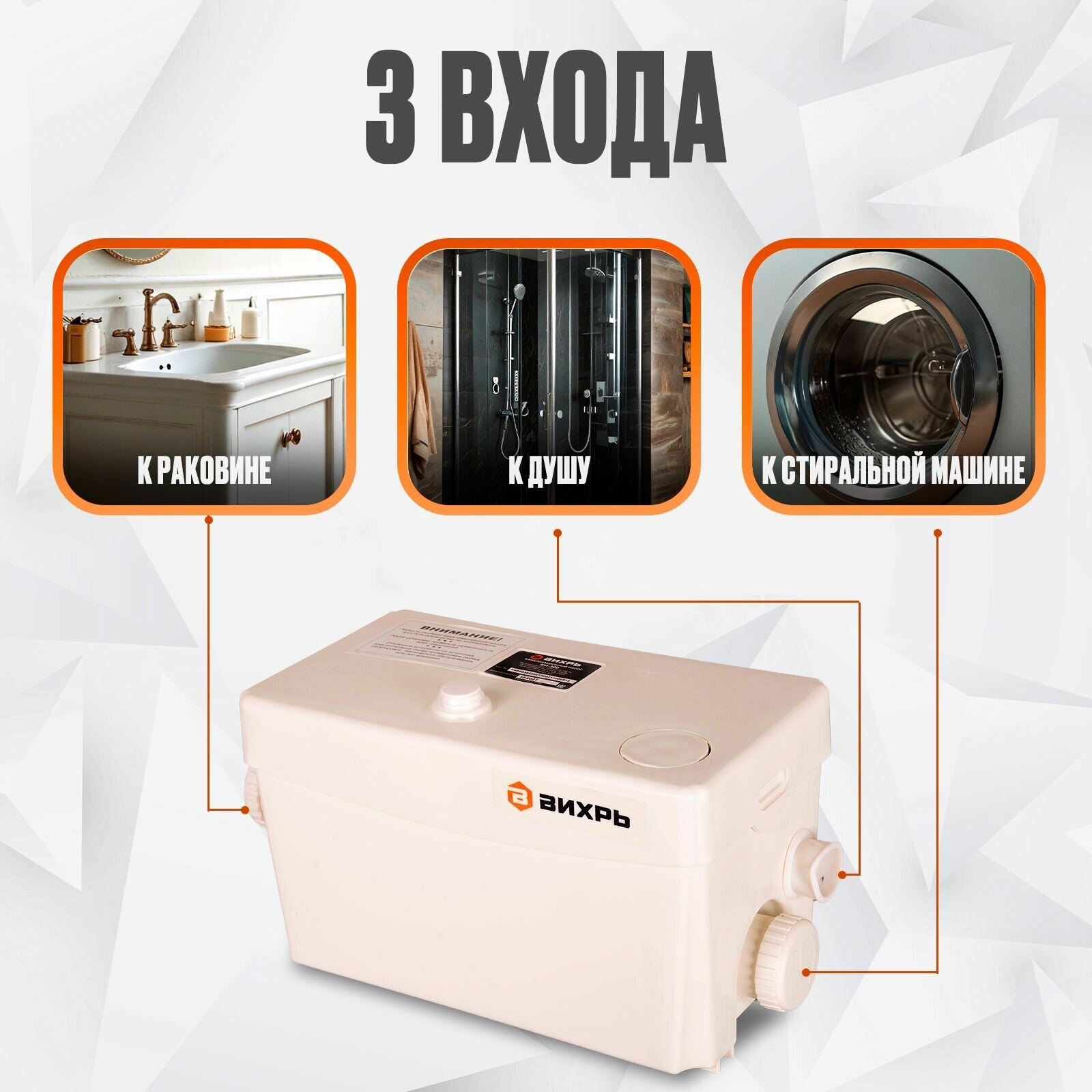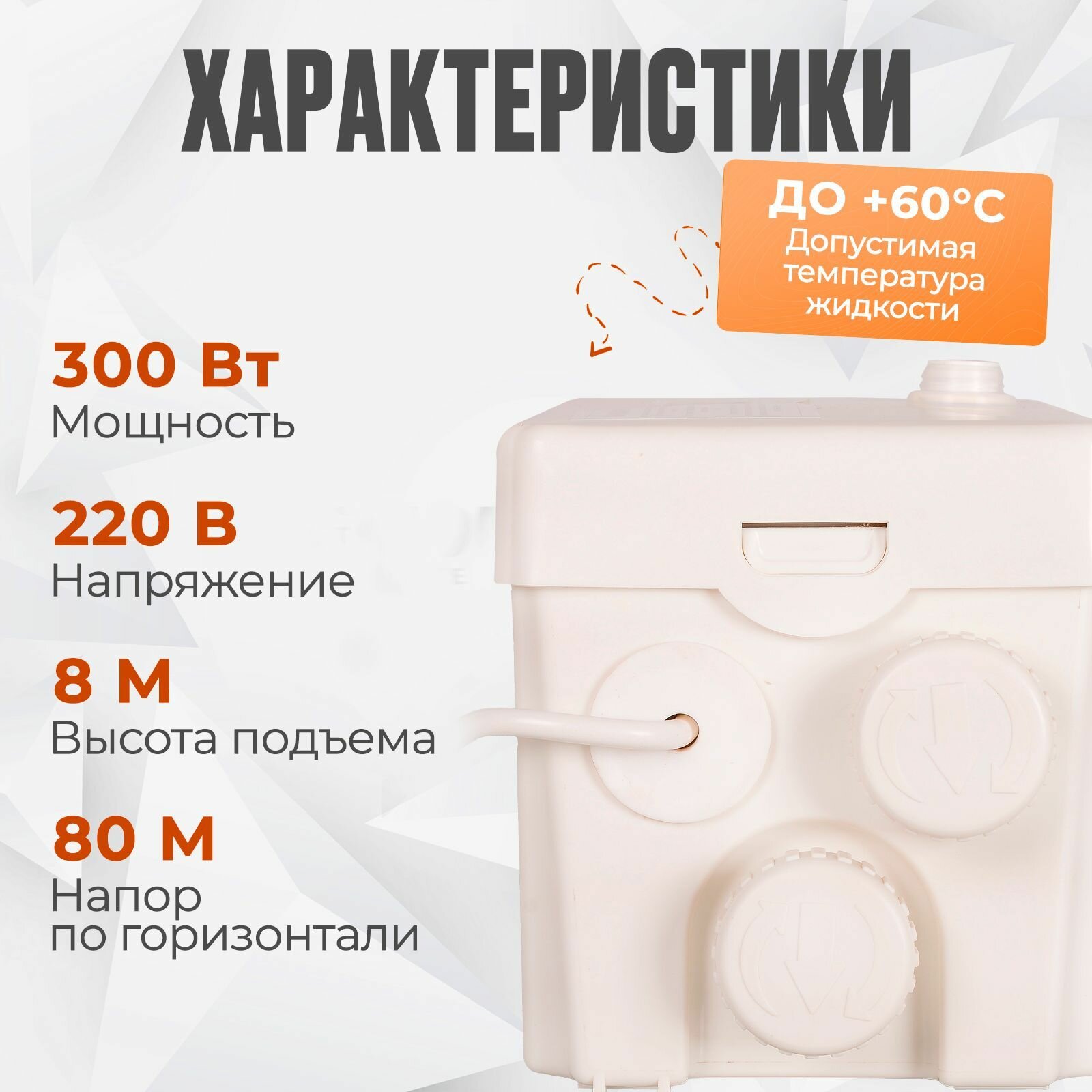 Канализационный насос Вихрь КН-300 (300 Вт, 100 л/мин, макс. напор по вертикали 8 м, по горизонтали 80м) для душа, раковины, кухни информация: