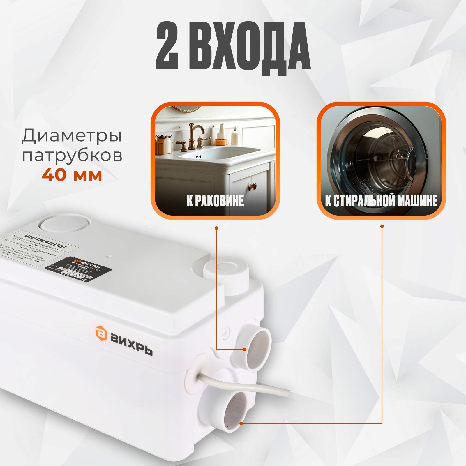Канализационный насос Вихрь КН-300 (300 Вт, 100 л/мин, макс. напор по вертикали 8 м, по горизонтали 80м) для душа, раковины, кухни 13 989 ₽
