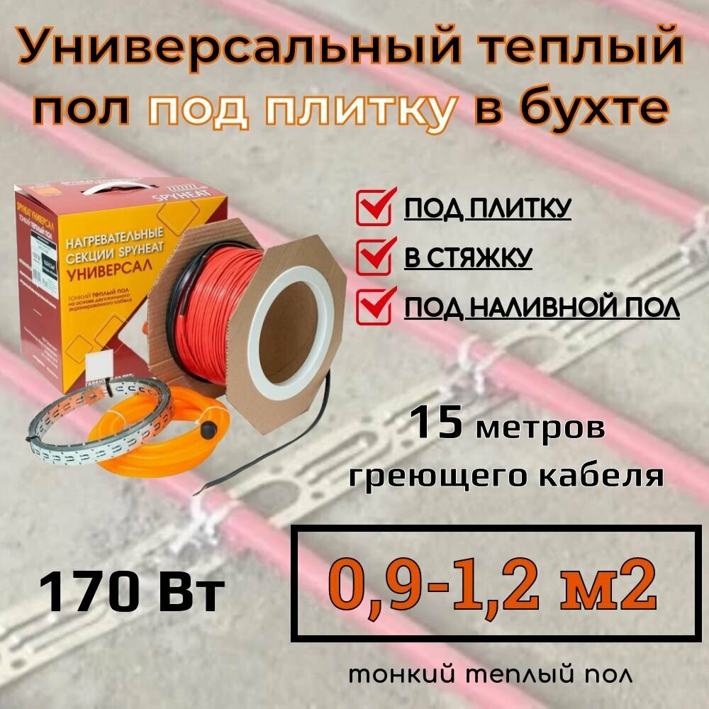 (0,9-1,2 м2) Тонкий универсальный теплый пол под плитку, в стяжку, наливной пол и на ЦСП (SpyHeat SHFD-12-170 Вт) 15 метров информация: