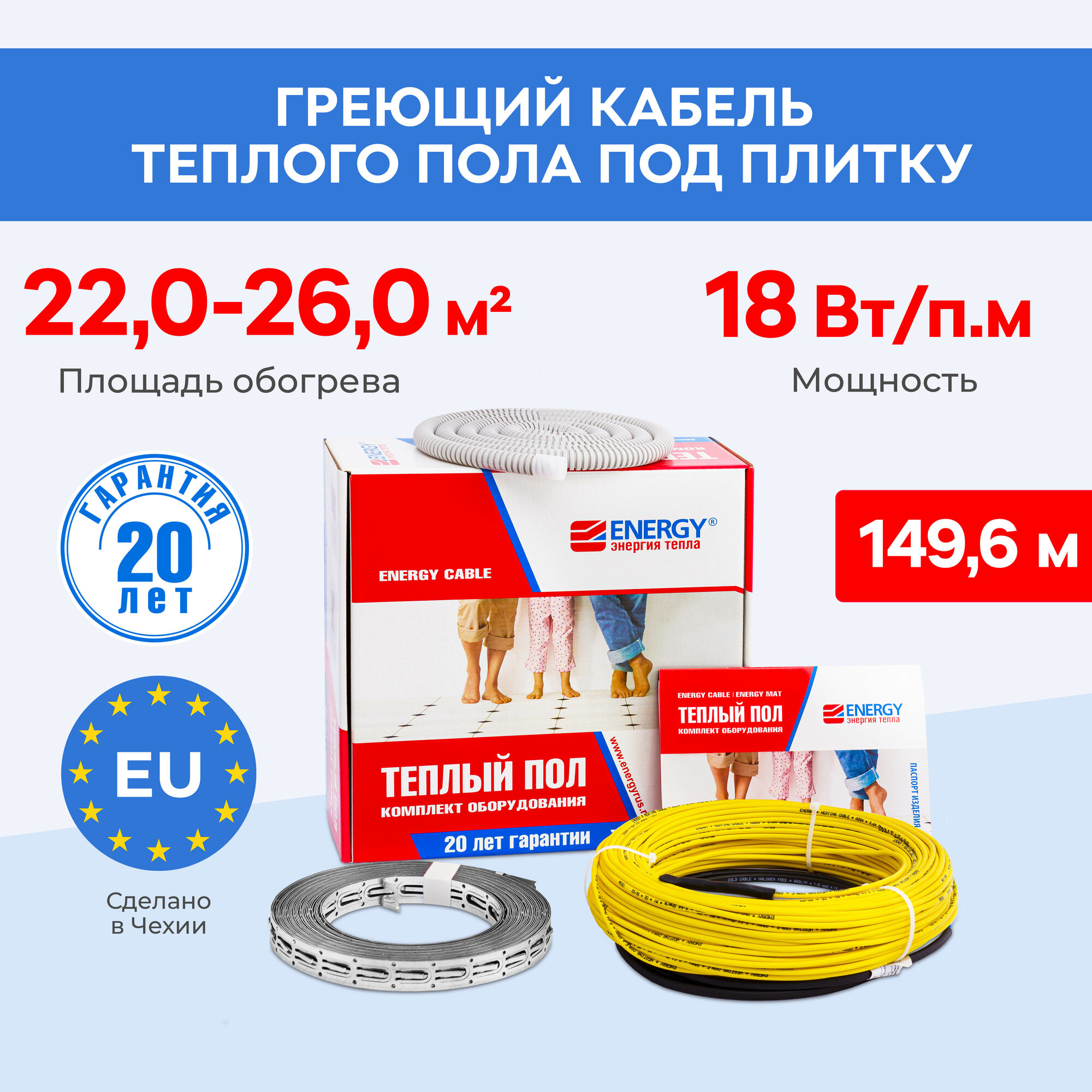 10 цен на Электрический греющий кабель в стяжку Energy Cable 2600Вт, длина 149,6 метра, площадь обогрева 22,0 — 26,0 м²