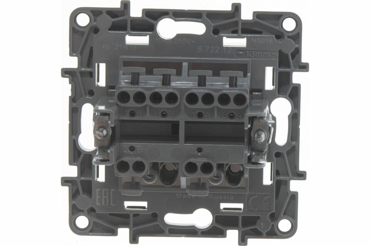 Выключатель двухклавишный Bylectrica Пралеска, брызгозащищенный, открытой установки, 6А, 250В, белый. А5 6-224.