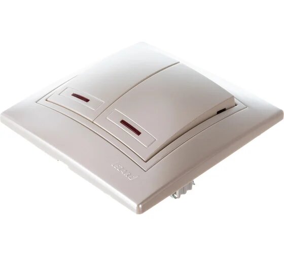Выключатель 2-клавишный Lezard Mira, встраиваемый, с подсветкой, в сборе, жемчужно-белый