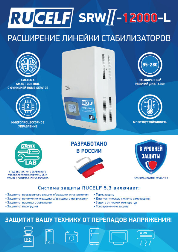 Стабилизатор напряжения RUCELF SRW.II-12000-L, 00001381 32 940 ₽