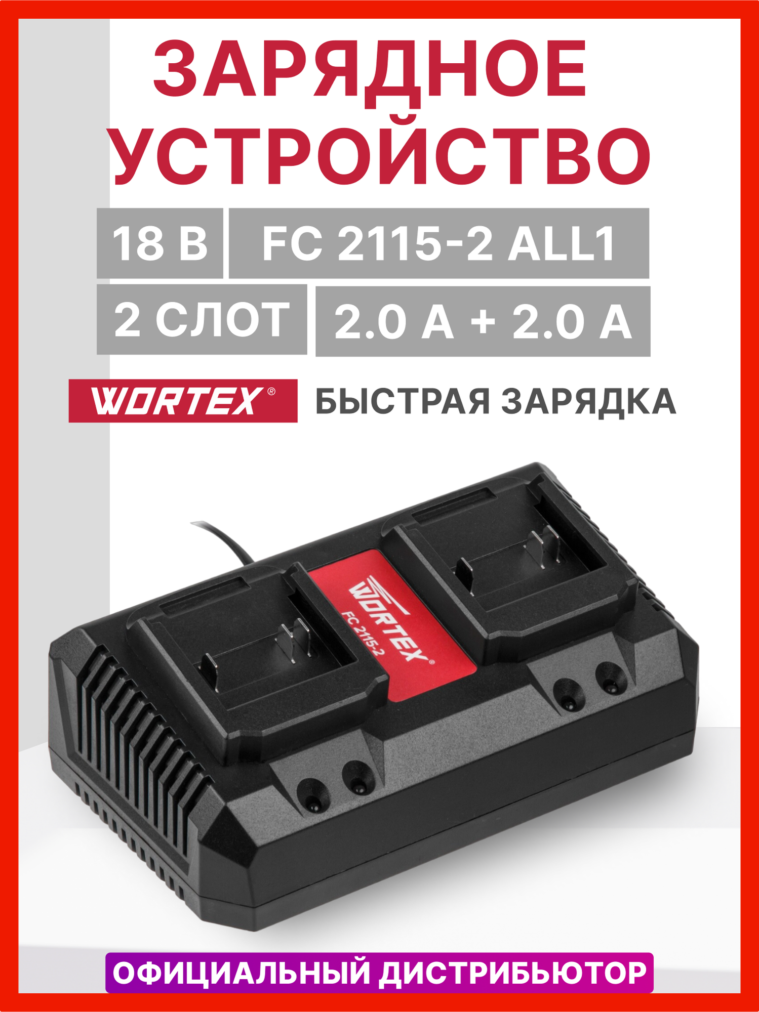 Зарядное устройство WORTEX FC 2115-2 ALL1 (18 В, 2.0 А + 2.0 A, 2 слота, стандартная зарядка) (0329182)