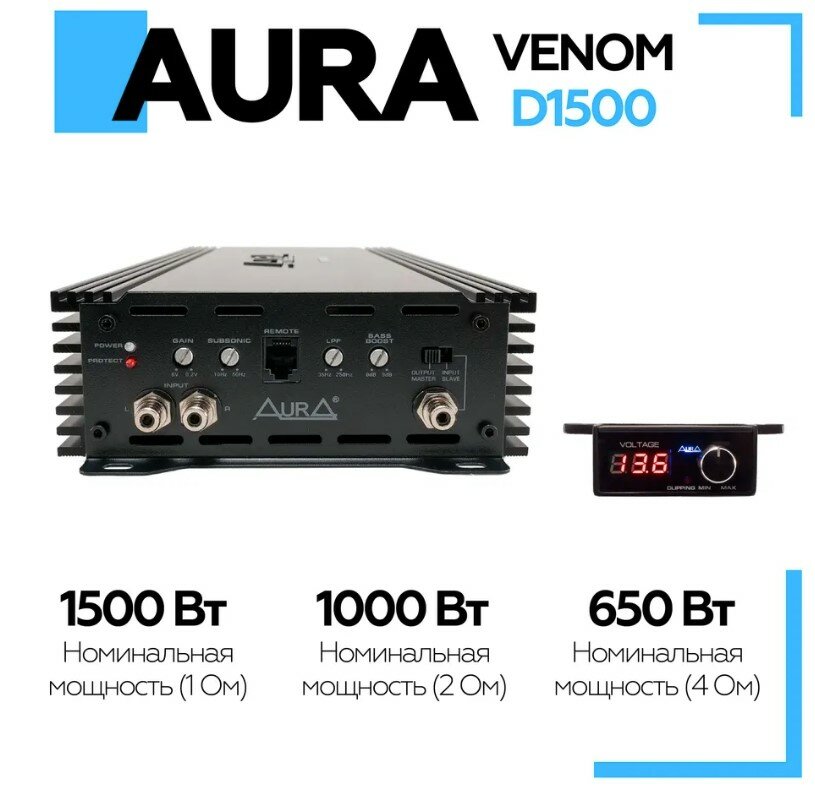 Отзывы на Автомобильный усилитель AURA VENOM D1500 1-канальный / класс D