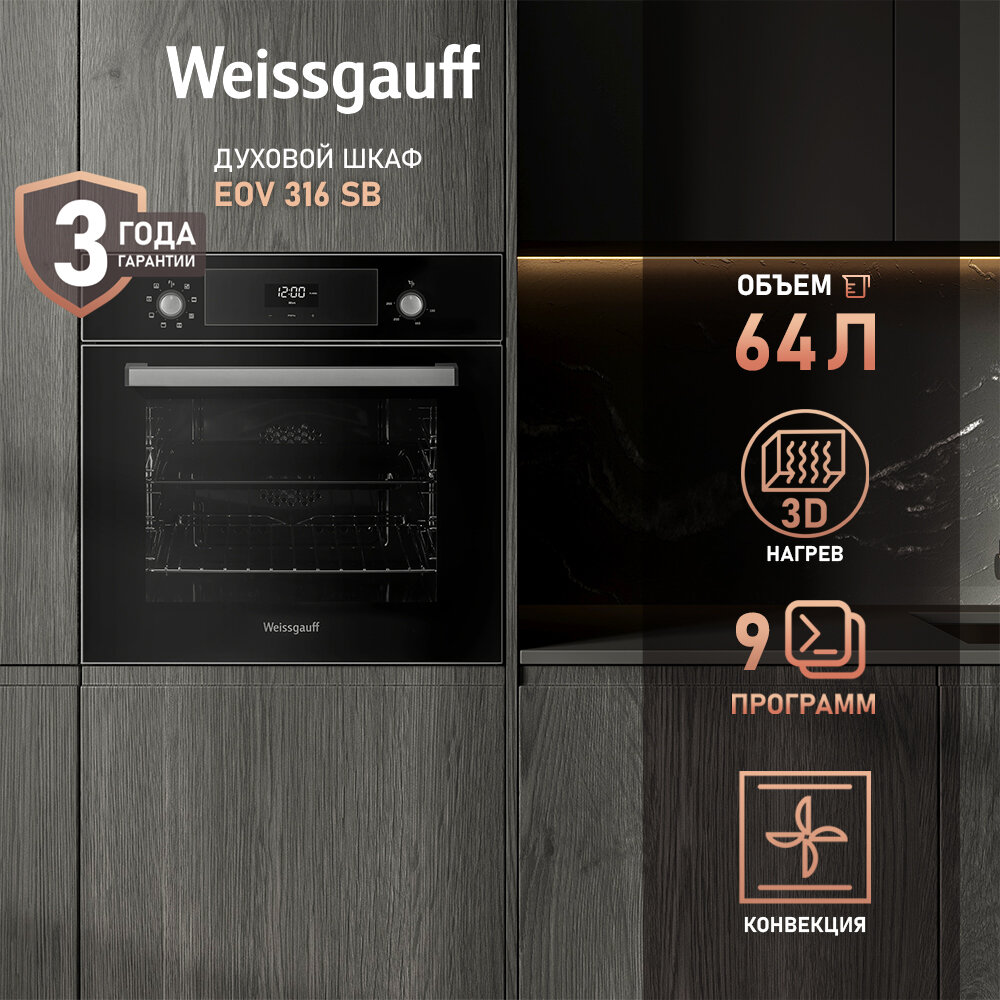 Духовой шкаф Weissgauff EOV 316 SB черный