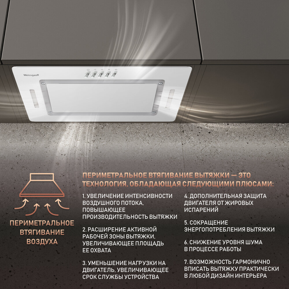 10 цен на Кухонная встраиваемая вытяжка Weissgauff Antlia 850 WH, Низкий уровень шума