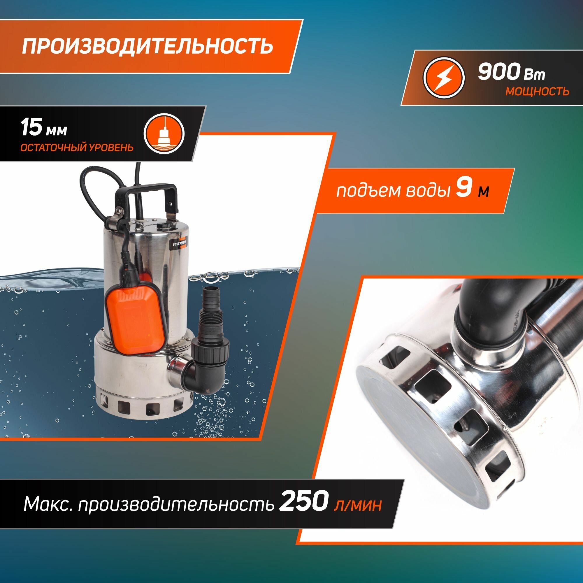Насос садовый дренажный Patriot F 900/S, 900 Вт, 15000 л/час информация: