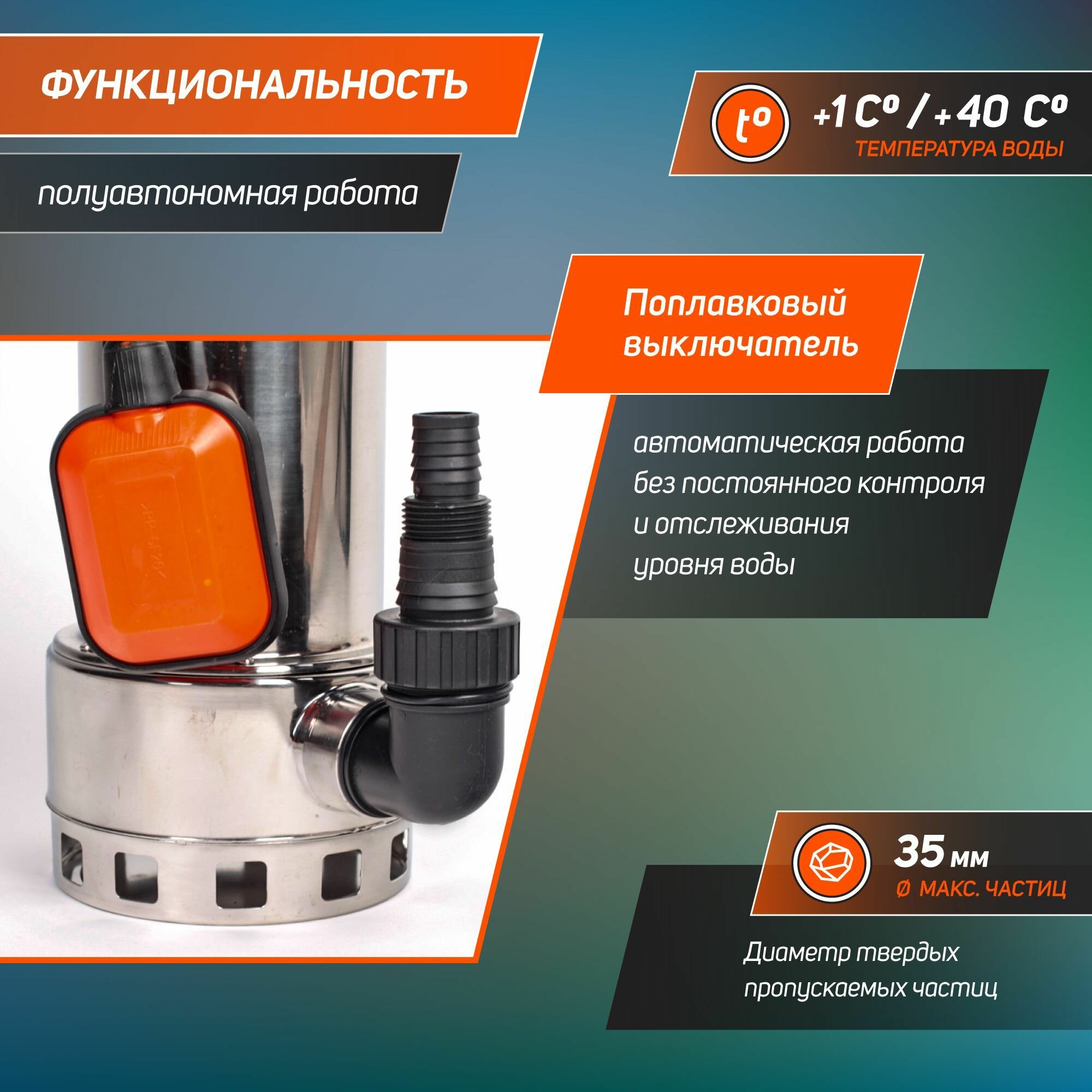 Насос дренажный Patriot F 900/S, 900 Вт, напор 10 м, подъём 9 м, глубина 8 м, 250 л/мин Patriot 5376 .