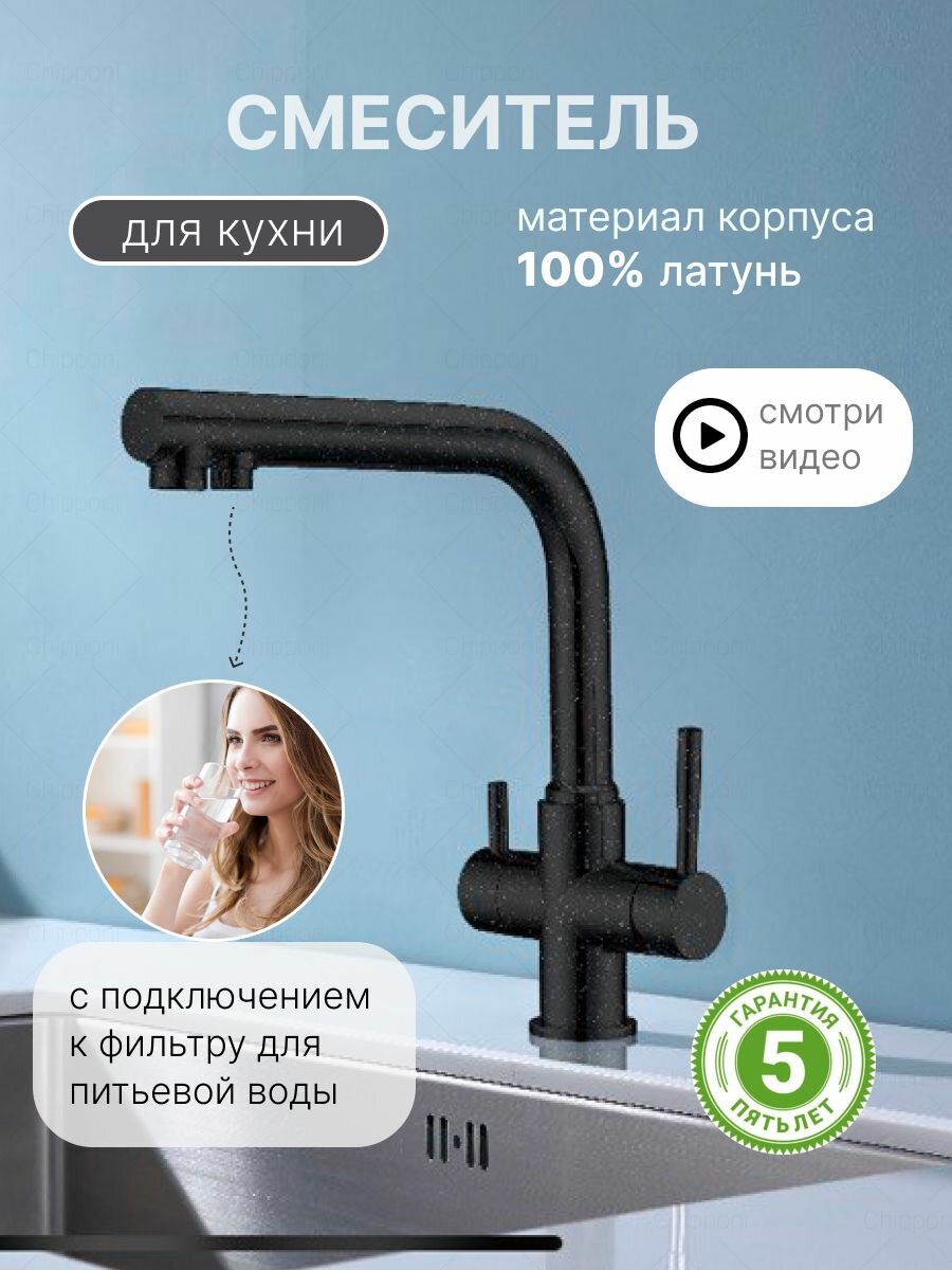 10 цен на Смеситель для кухни с подключением к фильтру питьевой воды черный, корпус латунь. Chipponi 212 MR.