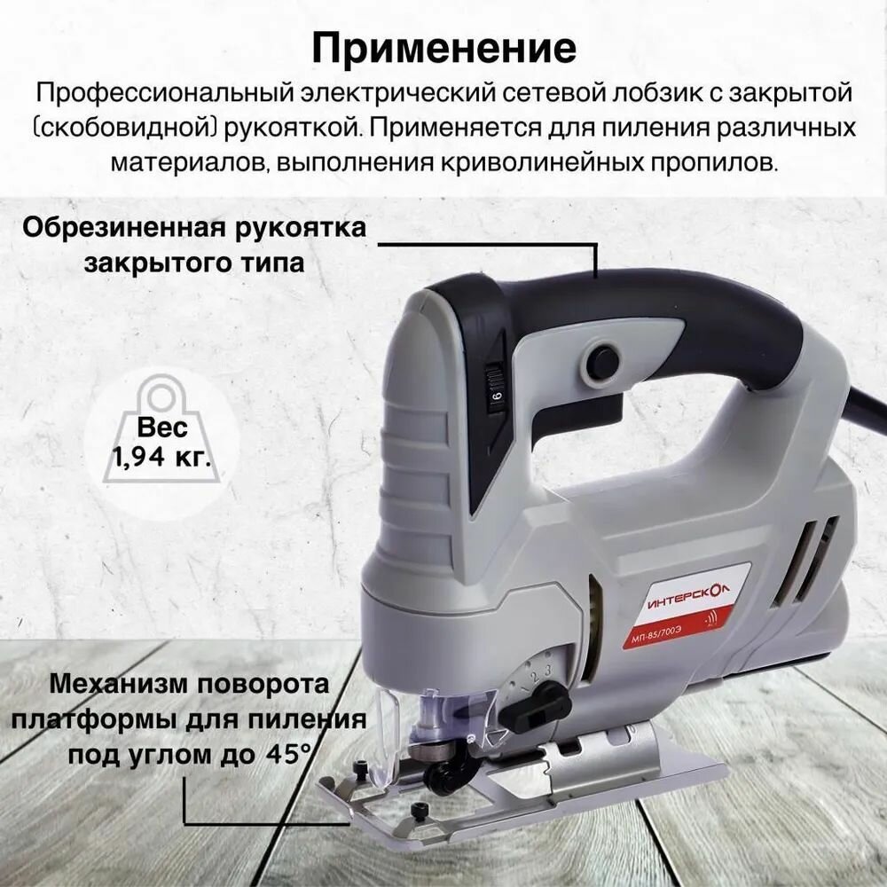 Отзывы на Лобзик ИНТЕРСКОЛ МП-85/700Э ДМ 556.1.0.00, 710 Вт, 85 мм, 3000 ход/мин