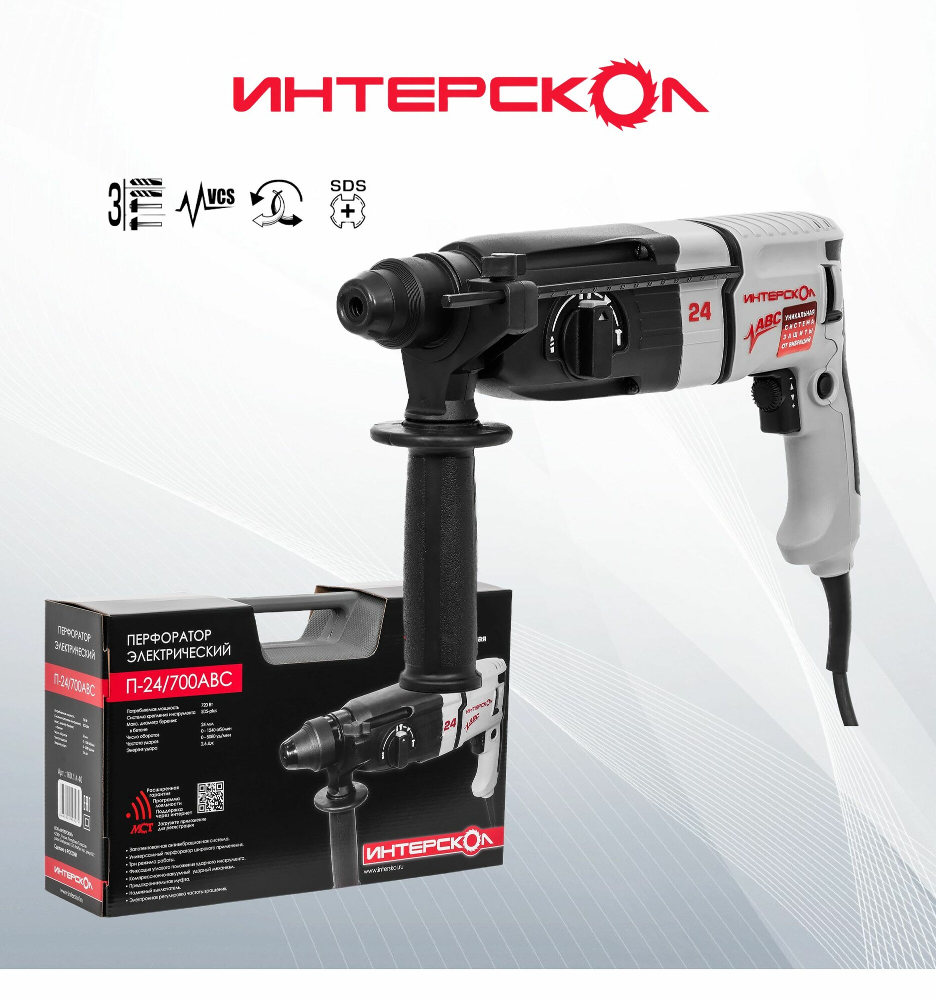 10 цен на Перфоратор Интерскол П-24/700АВС патрон:SDS-plus уд.:2.6Дж 720Вт (кейс в комплекте)