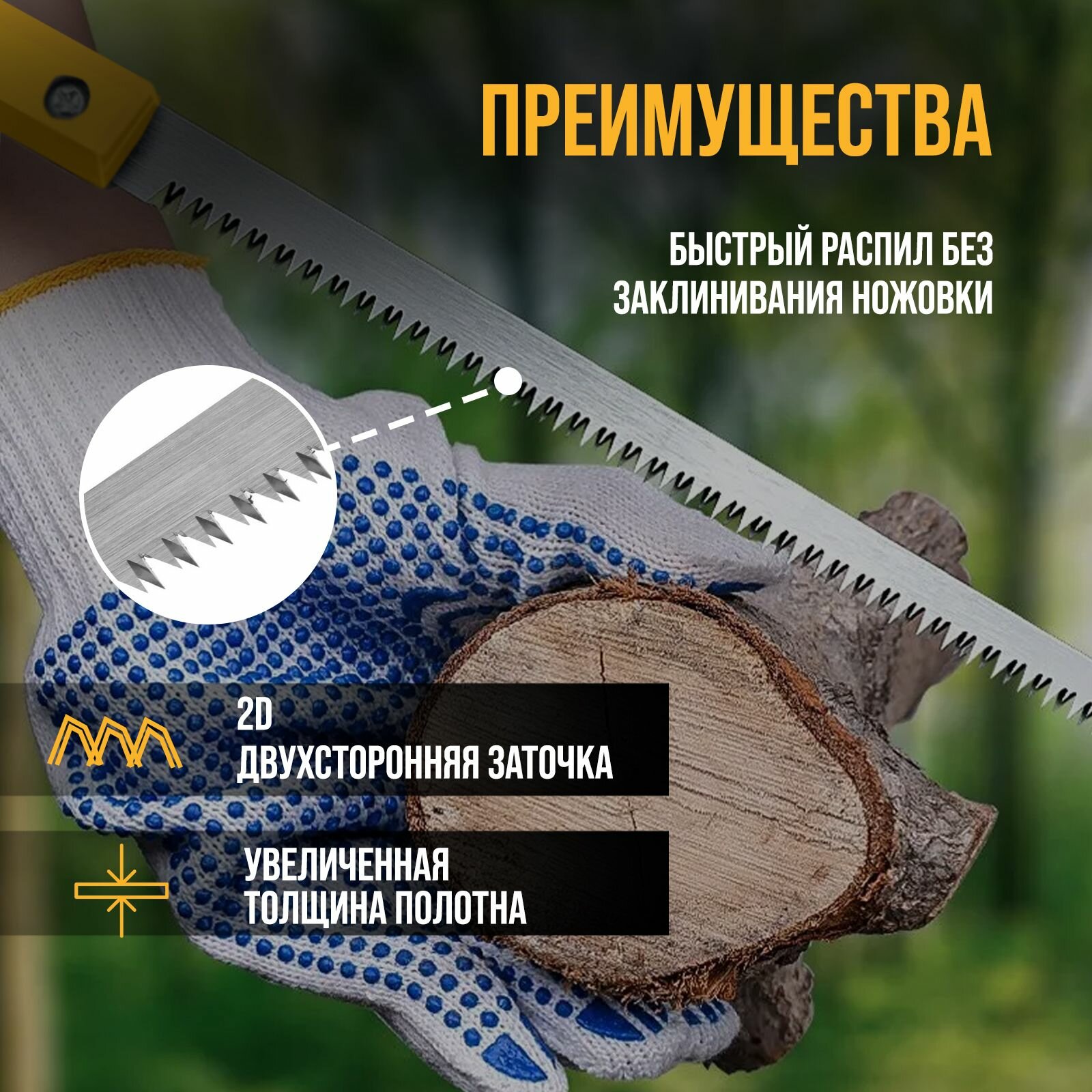 Ножовка садовая с чехлом, для сухой и сырой древесины, ДСП и ПВХ трубок, зуб с трехгранной заточкой
