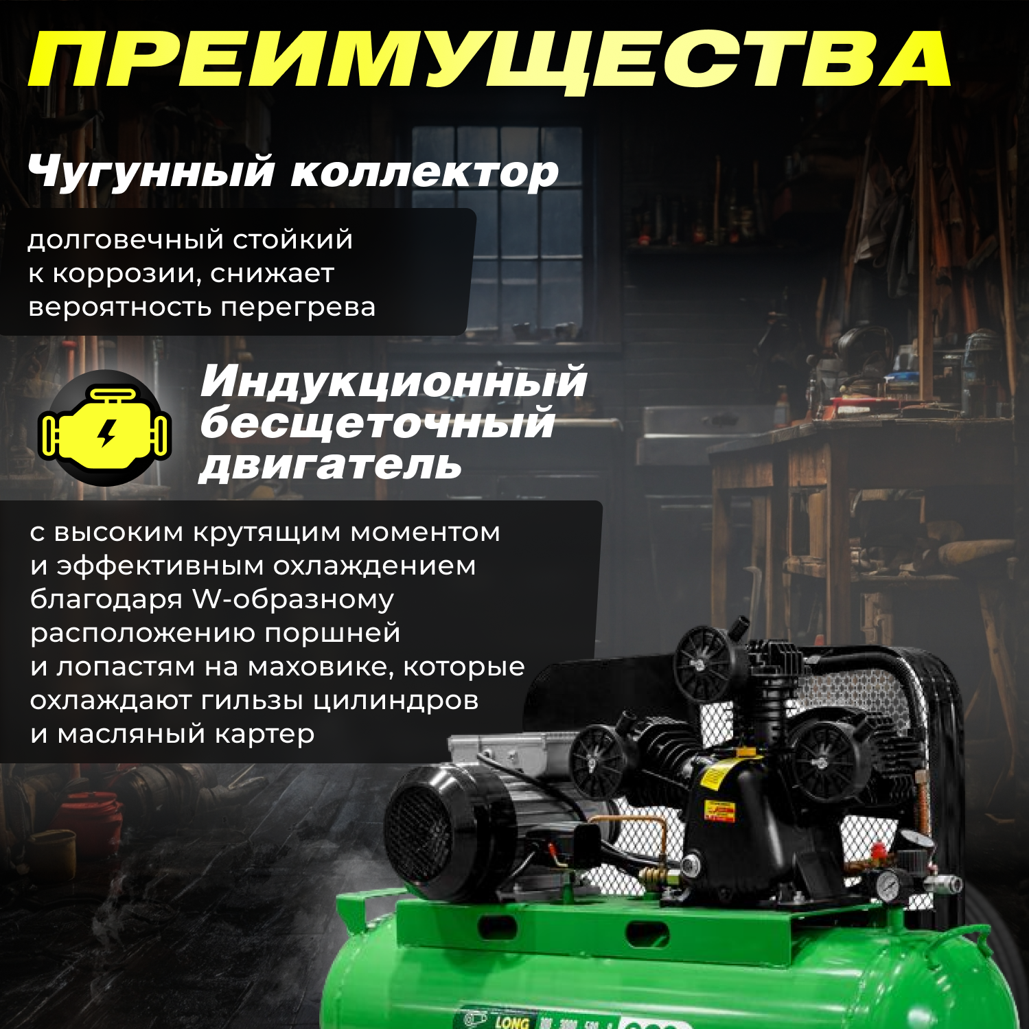 Компрессор воздушный масляный ECO AE-2005-2 (580 л/мин, 8 атм, ременной, ресив. 200 л, 380 В, 3.00 кВт) информация: