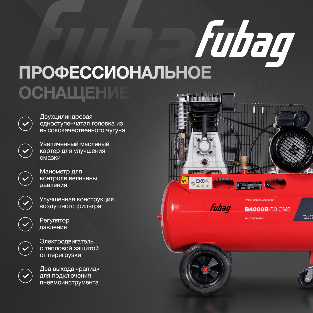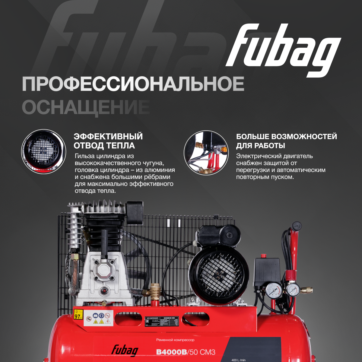 Отзывы на Компрессор воздушный ременной FUBAG B4000B/50, 400 л/мин, ресивер 50 л, 10 бар, 220 В