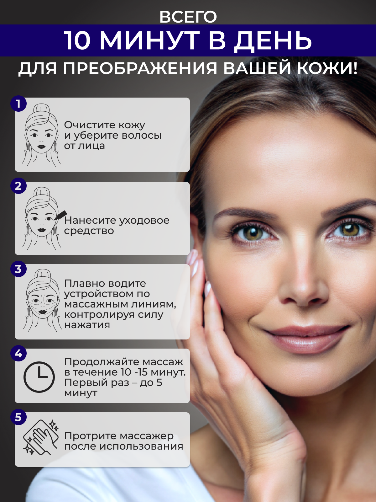 | Зона массажа | руки / лицо / тело |