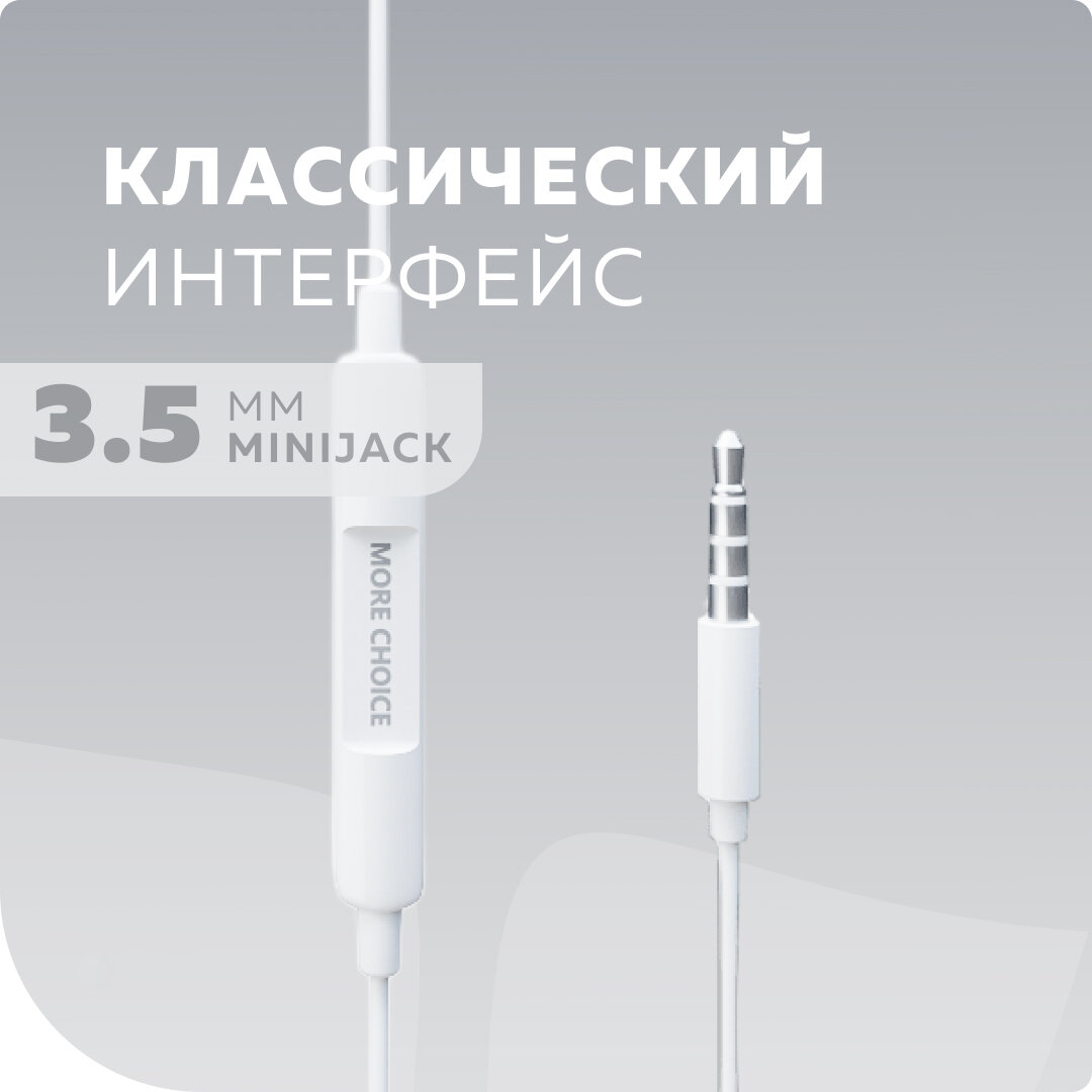 Наушники More choice G31S, mini jack 3.5 mm, белый 490 ₽