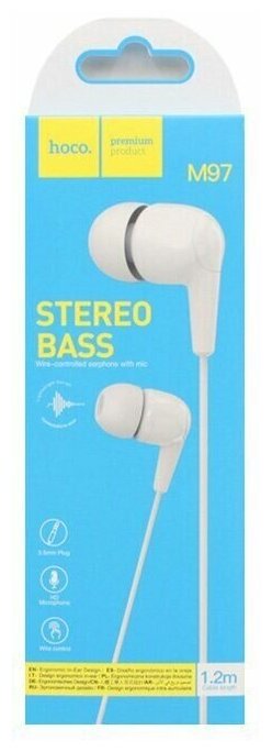 Наушники-вкладыши внутриканальные проводные Hoco M97 с микрофоном белые и черные. информация: