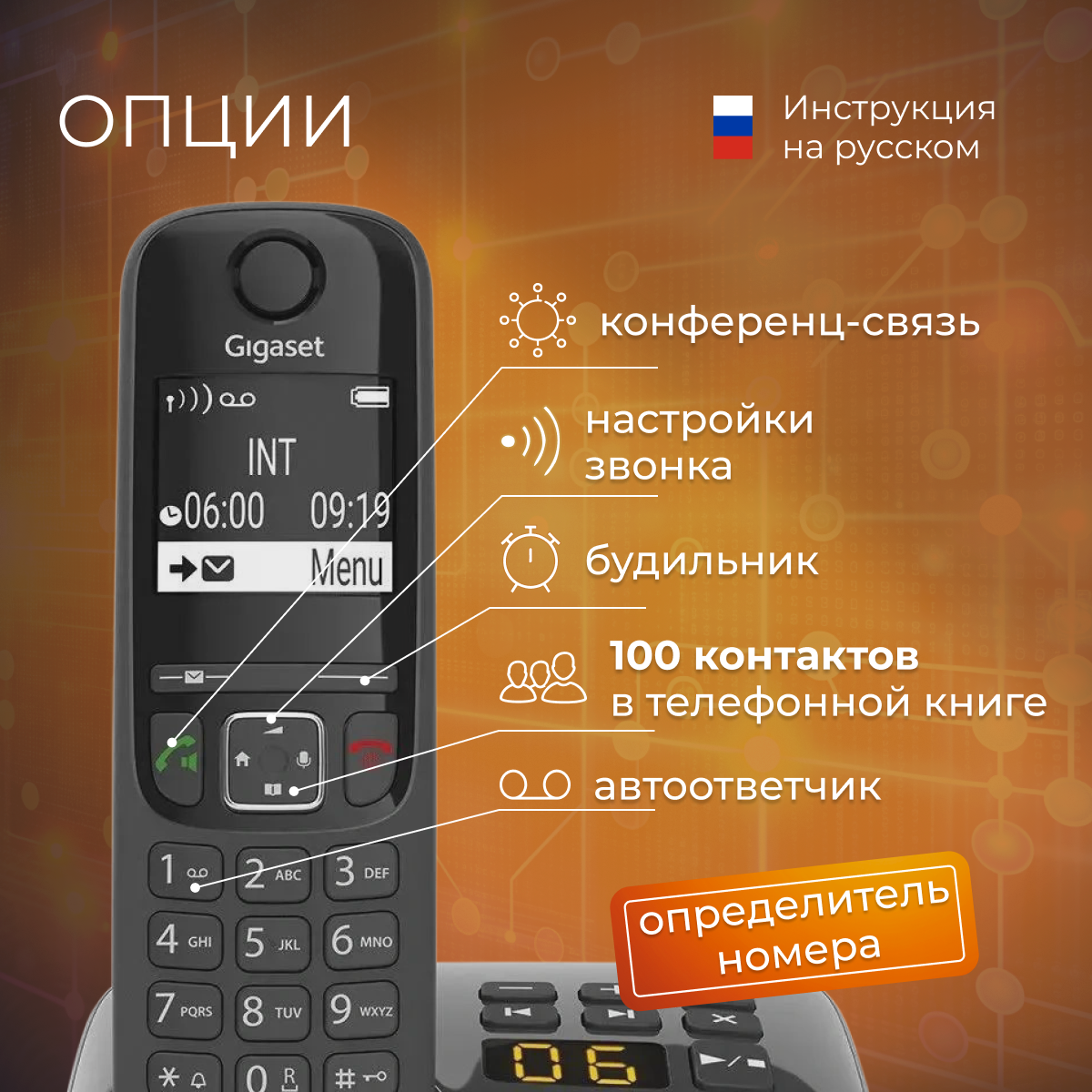 Радиотелефон DECT Gigaset AS690A черный информация: