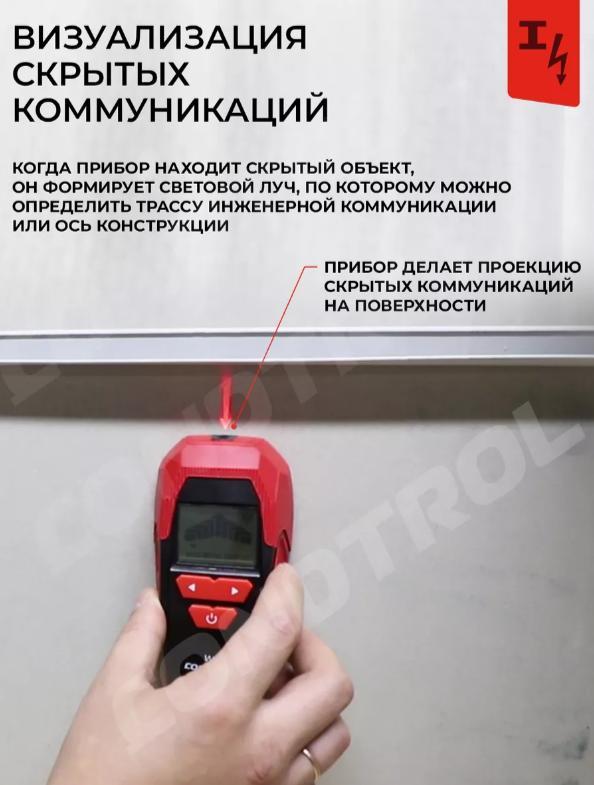 10 цен на Сканер проводки Wall CONDTROL в полах и потолках конструкции из дерева, цветного и чёрного металла, проводку под напряжением.