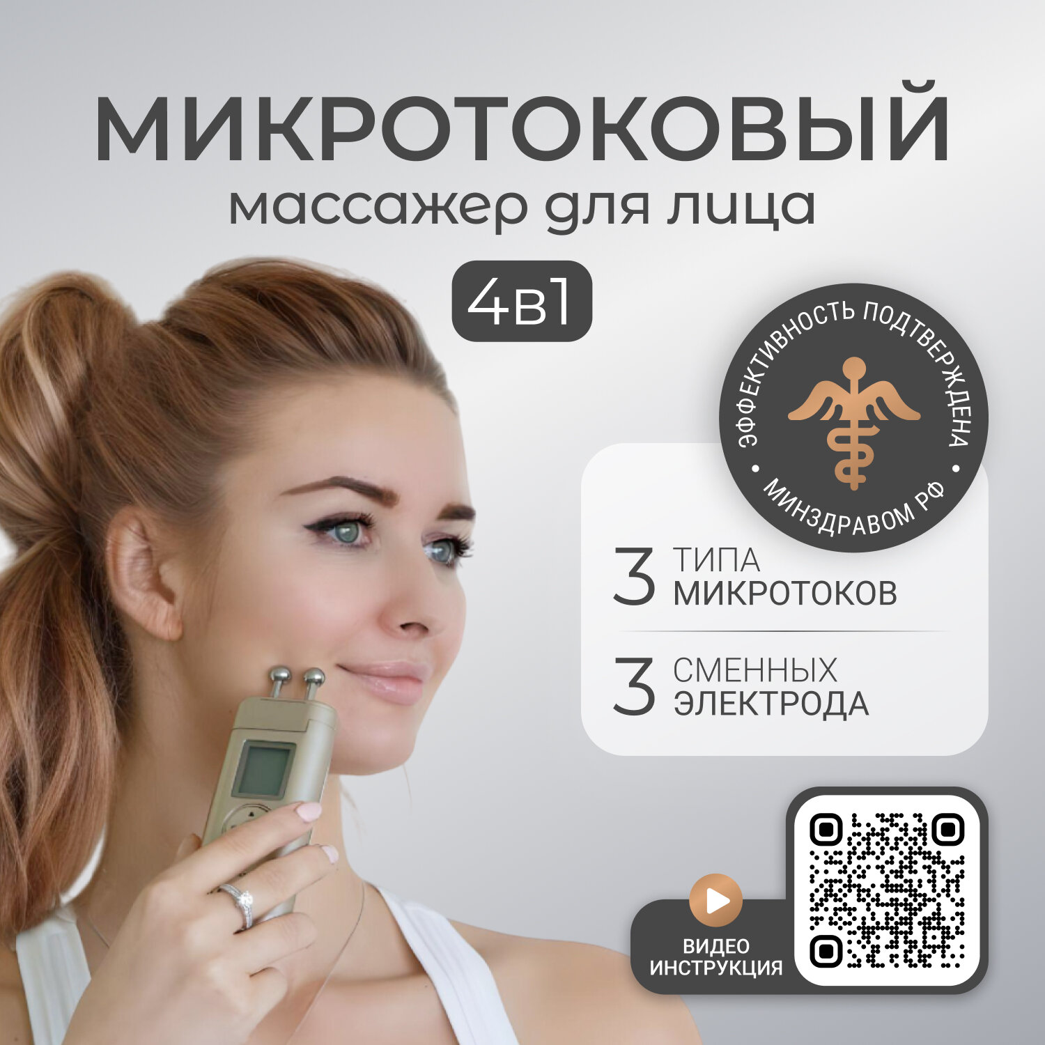 Массажер для лица и шеи микротоковый RF-EMS лифтинг