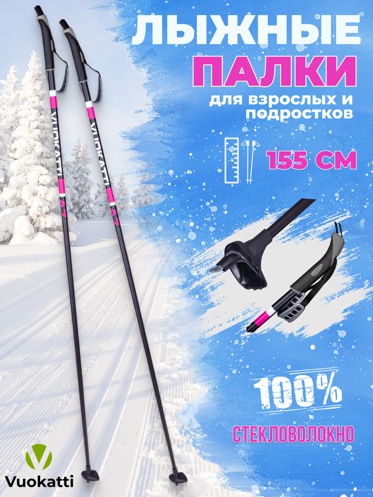 Отзывы на Палки лыжные Vuokatti Black/Magenta, 100% стекловолокно, 155 см