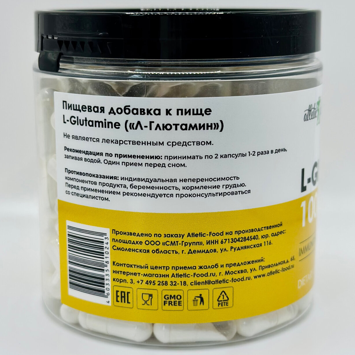 Atletic Food Л-Глютамин L-Glutamine 1000 mg - 200 капсул, --- информация: